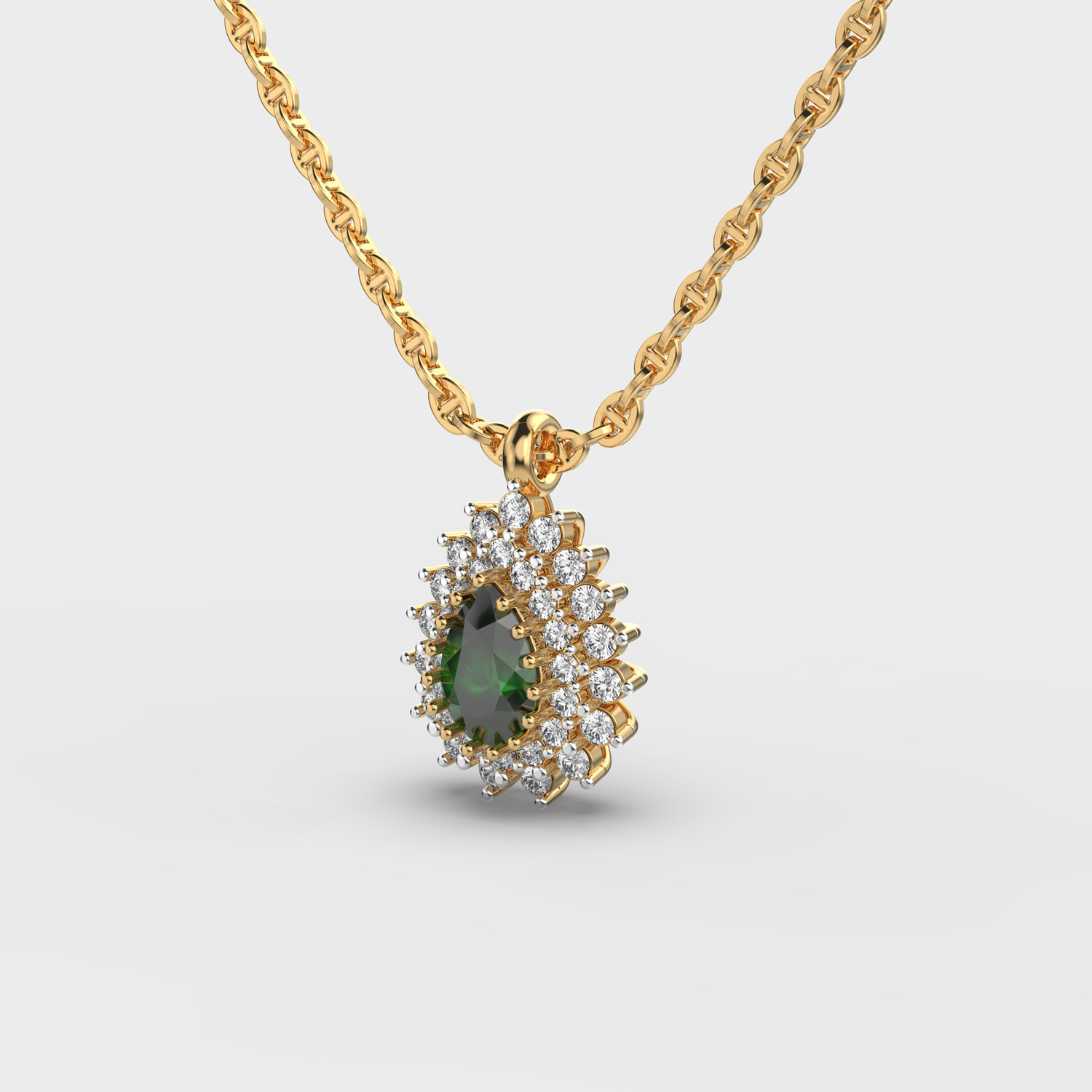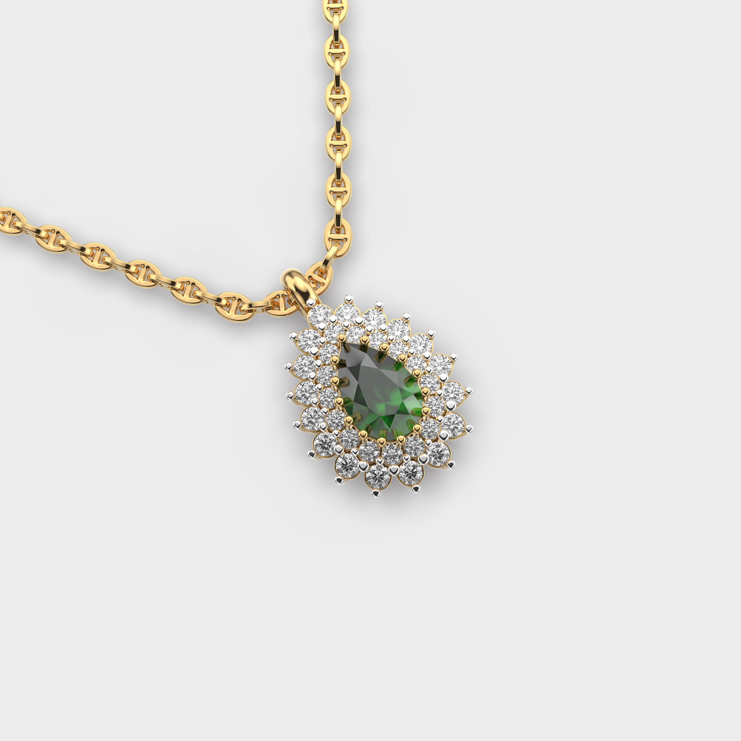 Belladonna Green Stone Diamond Pendant With Chain