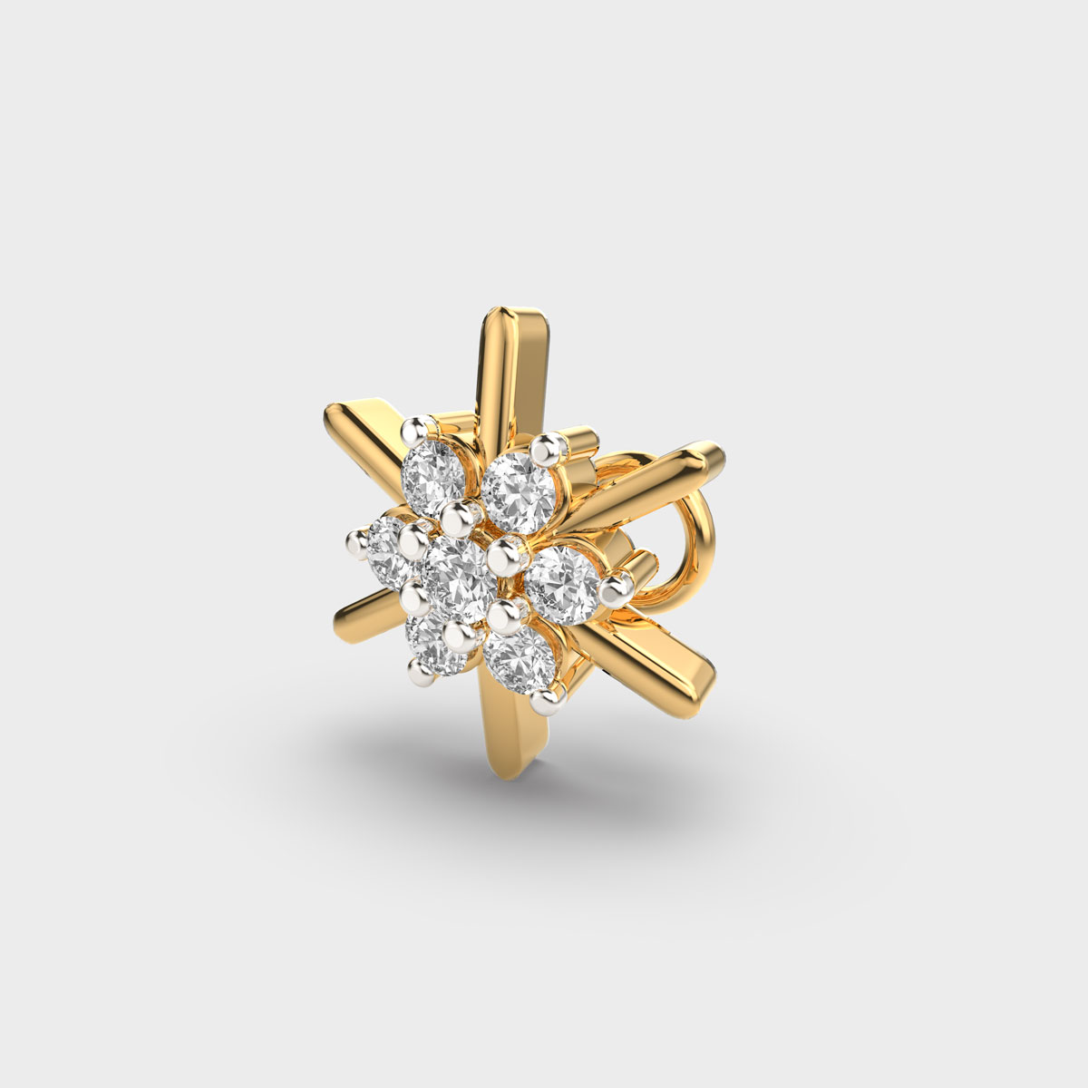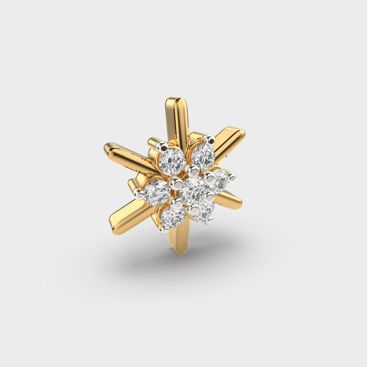 Blazing Round Sunburst Diamond Nosepin is a delicate and elegant accessory that adds subtle sparkle and charm to any look. Crafted with precision, the sparkling diamond enhances its elegant design, making it perfect for both daily wear and special occasions. Lightweight and versatile, a diamond nosepin combines tradition with contemporary style, serving as a timeless piece that reflects personal elegance and refined taste.