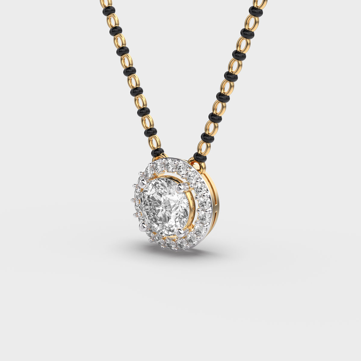 Brilliant Padma Cut Diamond Halo Mangalsutra Pendant with Chain