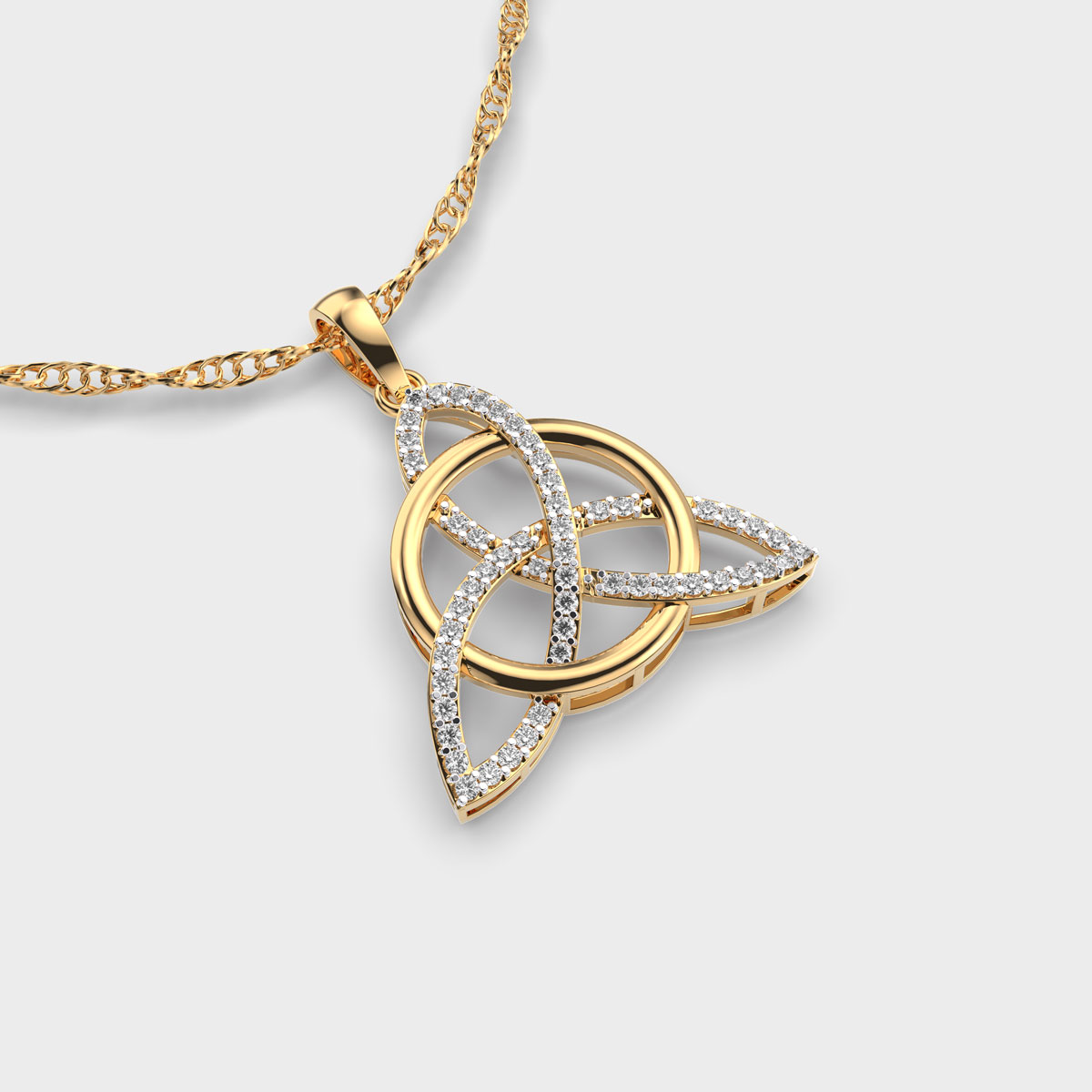 Celtic Trinity Knot Diamond Pendant Without Chain is a timeless symbol of elegance and sophistication, designed to add sparkle and charm to any outfit. Carefully set diamonds create a radiant shimmer that catches the light from every angle, making it perfect for daily wear, festive occasions, or special celebrations. Versatile and stylish, a diamond pendant complements both modern and classic looks, offering a graceful blend of luxury, brilliance, and enduring beauty.