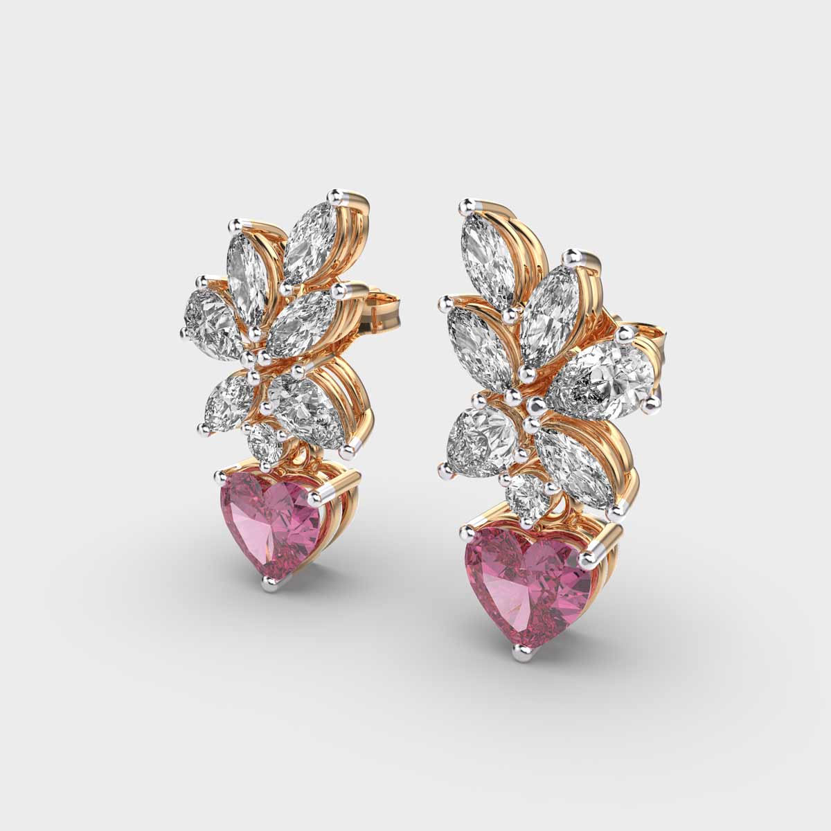 Cherry Blossom Red Stone Diamond Dangler Earrings are the best jewellery essential, designed to add a touch of elegance and sparkle. Their versatile design makes them perfect for everyday wear, office settings, or special occasions, effortlessly complementing any outfit. Crafted to strike a balance between subtlety and brilliance, diamond studs offer a refined yet striking look that suits all styles and personalities. A classic accessory that combines sophistication, versatility, and enduring charm.