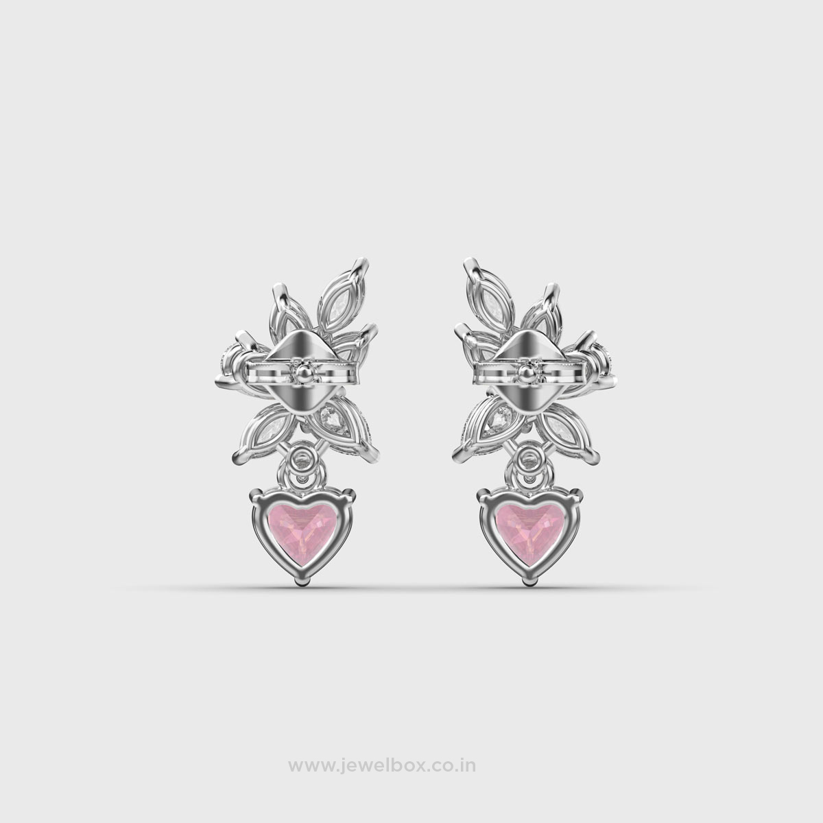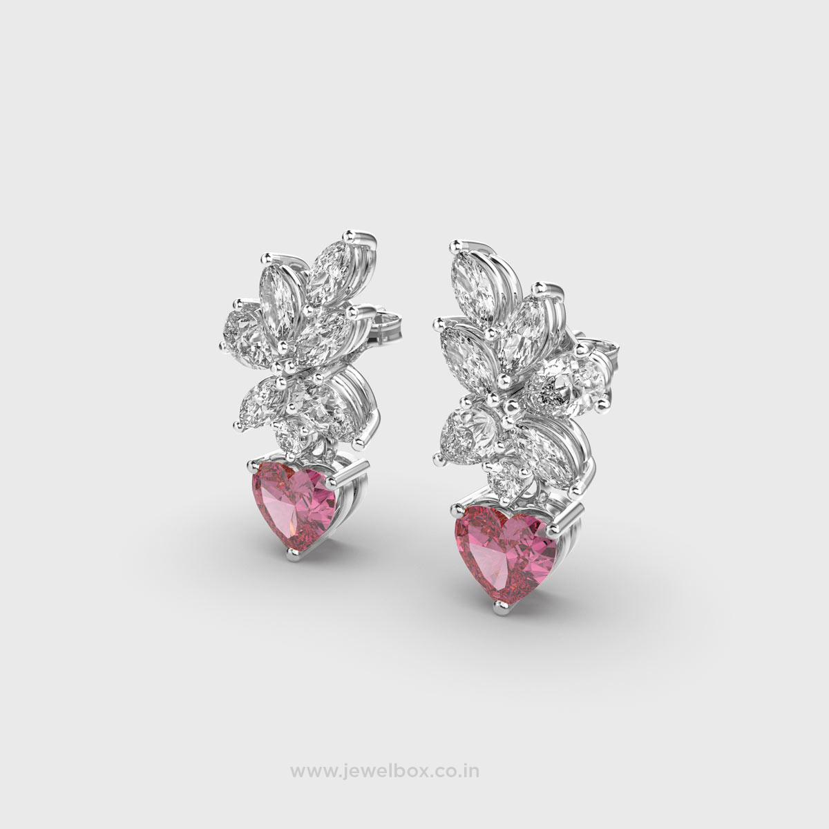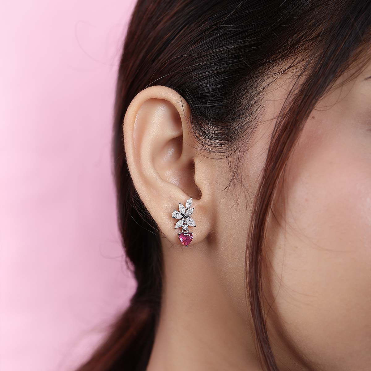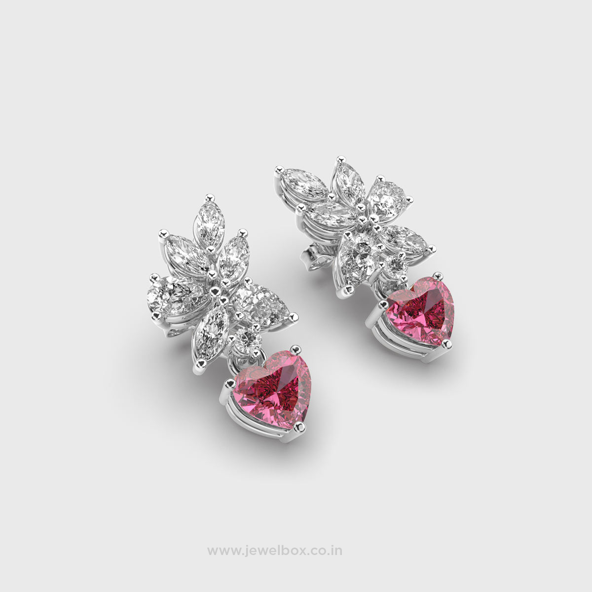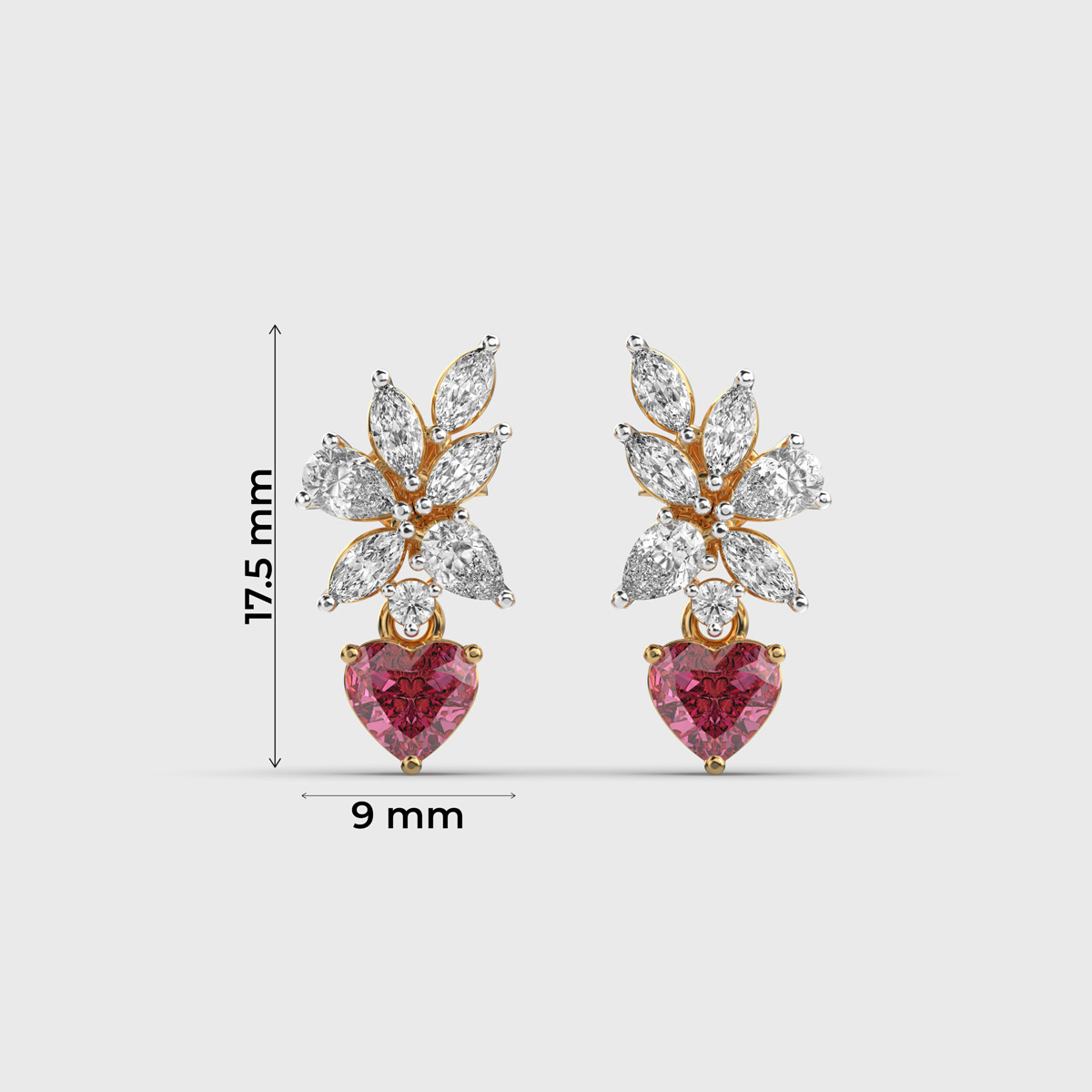 Cherry Blossom Red Stone Diamond Dangler Earrings