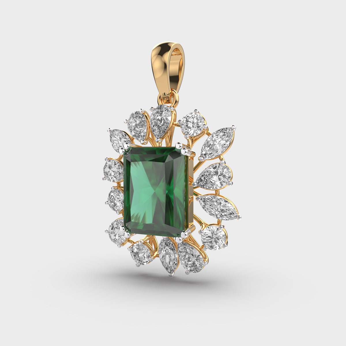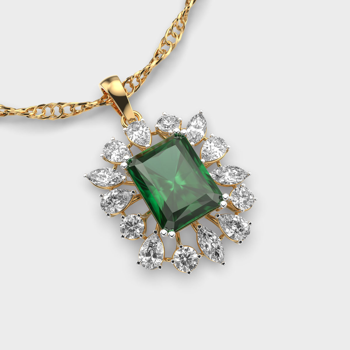 The Contessa Green Stone Diamond Pendant (Without Chain) is a timeless symbol of elegance and sophistication, designed to add sparkle and charm to any outfit. Carefully set diamonds create a radiant shimmer that catches the light from every angle, making it perfect for daily wear, festive occasions, or special celebrations. Versatile and stylish, a diamond pendant complements both modern and classic looks, offering a graceful blend of luxury, brilliance, and enduring beauty.
