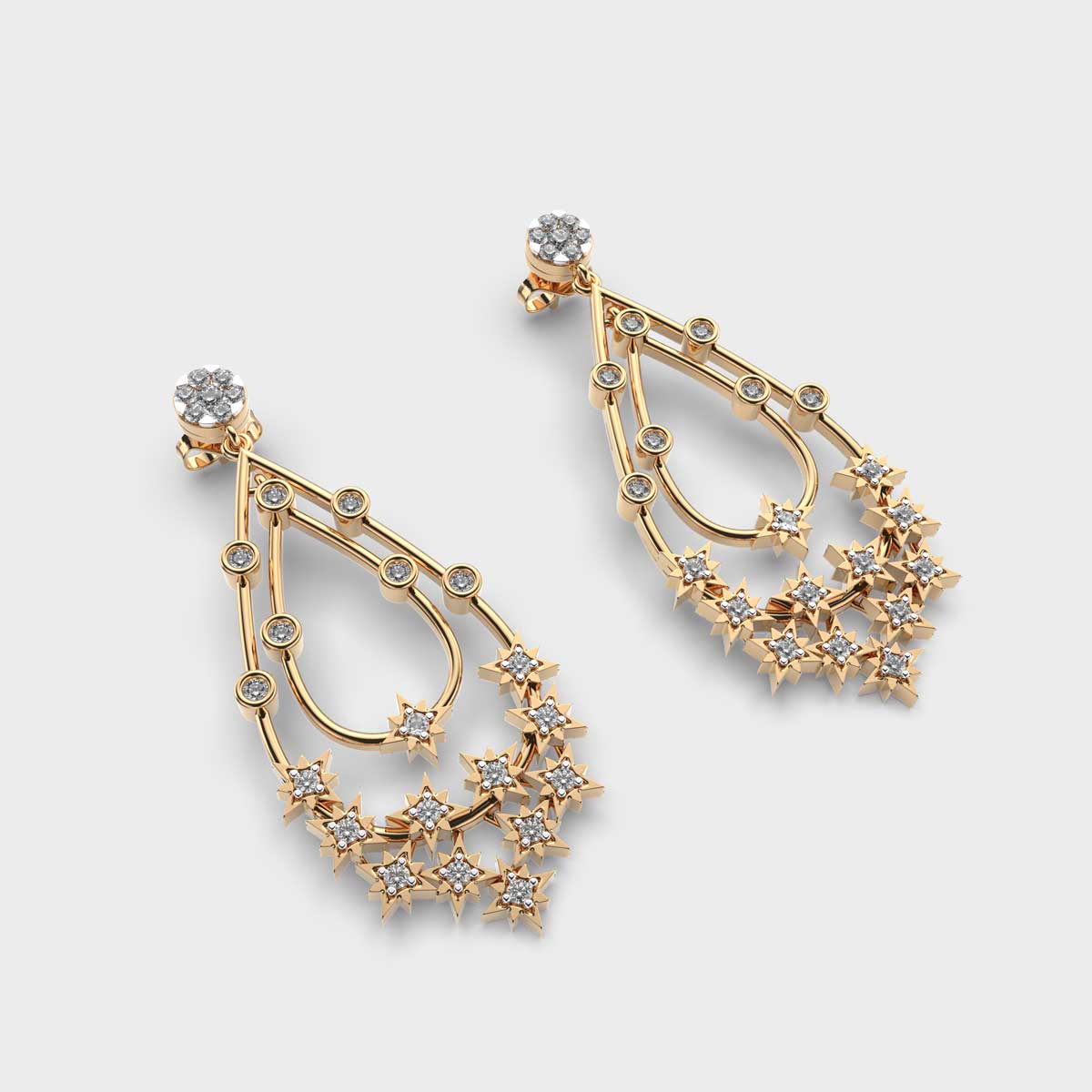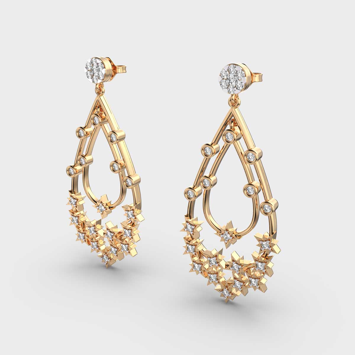 Elevate your festive and evening looks with the Drops Of Star Diamond Danglers. Featuring a cascade of sparkling diamonds arranged in a star-inspired design, these danglers bring a subtle yet radiant shimmer with every movement. Perfect for pairing with both traditional sarees and contemporary outfits, they add a touch of celestial charm and glamour to any ensemble.