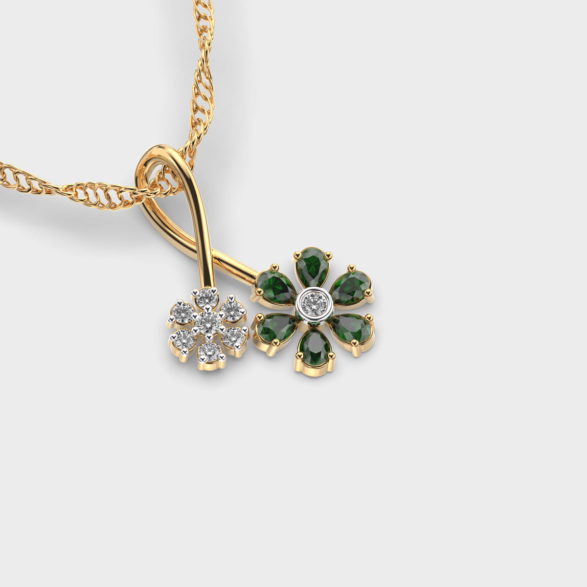 Dual Flower Green Stone Diamond Pendant without Chain