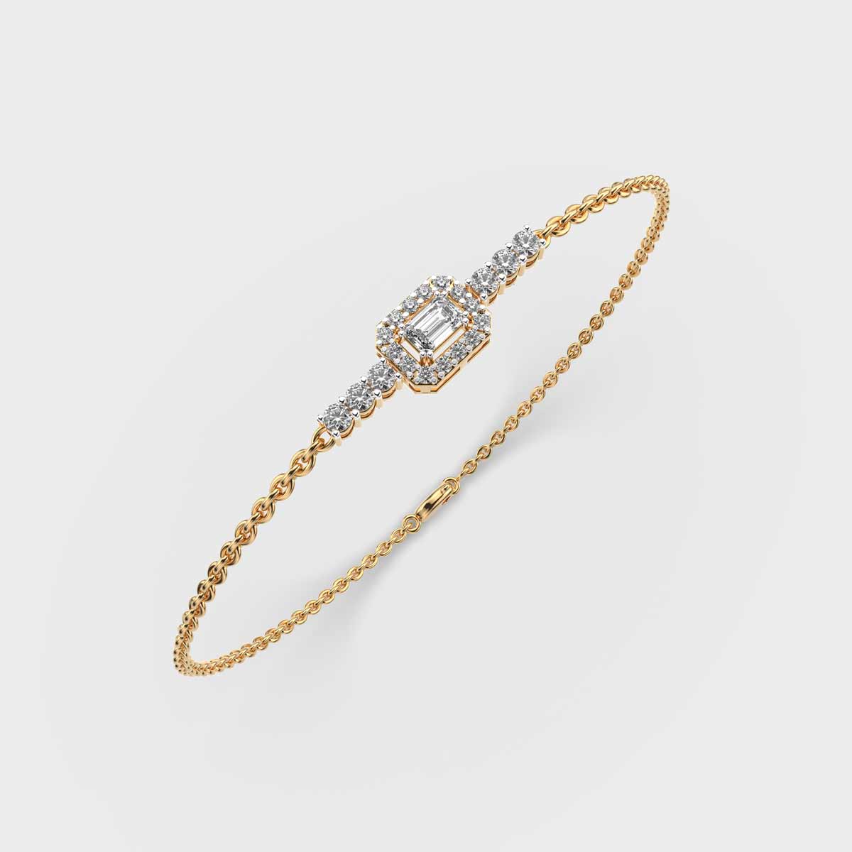 Edgy Halo Emerald Cut Diamond Bracelet is a graceful accessory that adds sparkle and sophistication to any outfit. Featuring carefully set diamonds that catch the light from every angle, this piece is perfect for elevating everyday looks or complementing special occasions. Designed to balance elegance with versatility, this diamond bracelet is a timeless piece that reflects style, luxury, and enduring charm, making it a must-have addition to any jewellery collection.