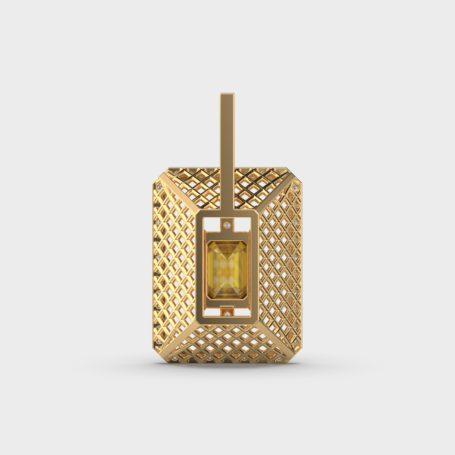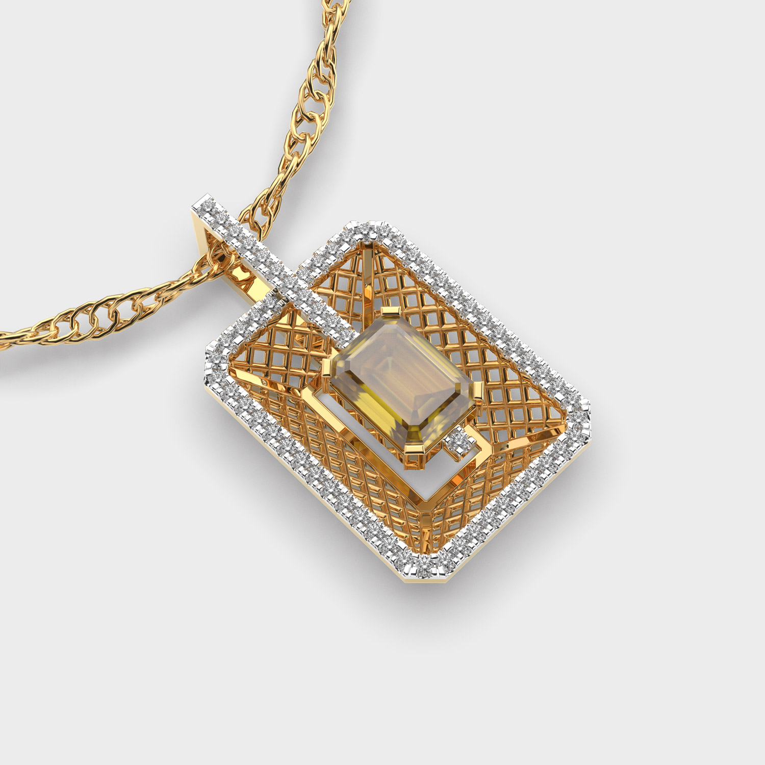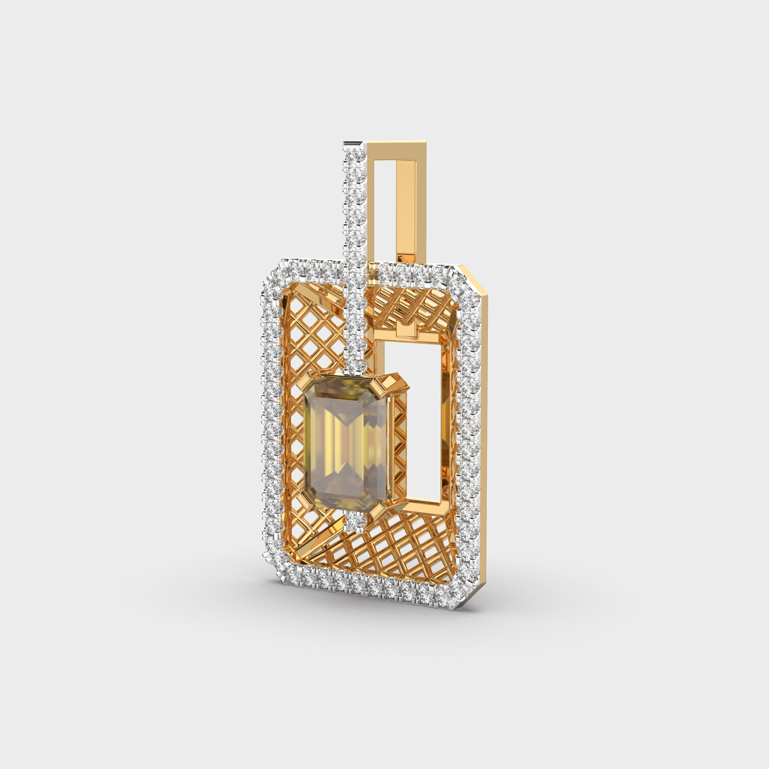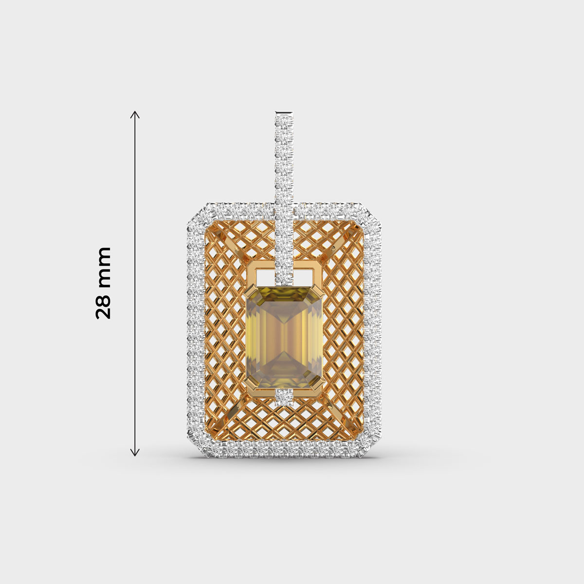 Elegant Amber Grid Diamond Pendant Without Chain For Men