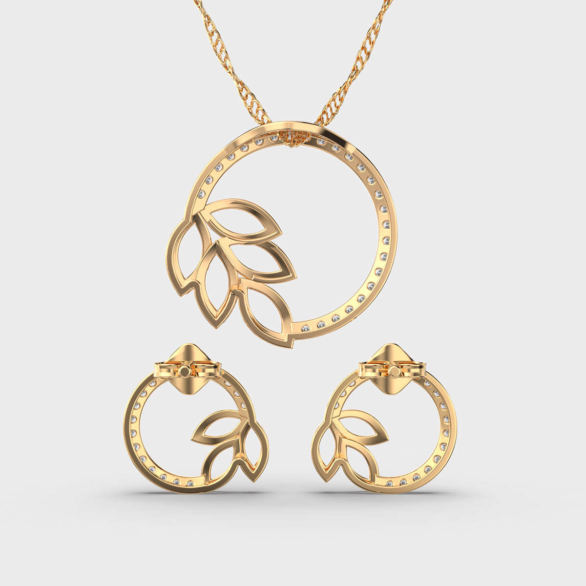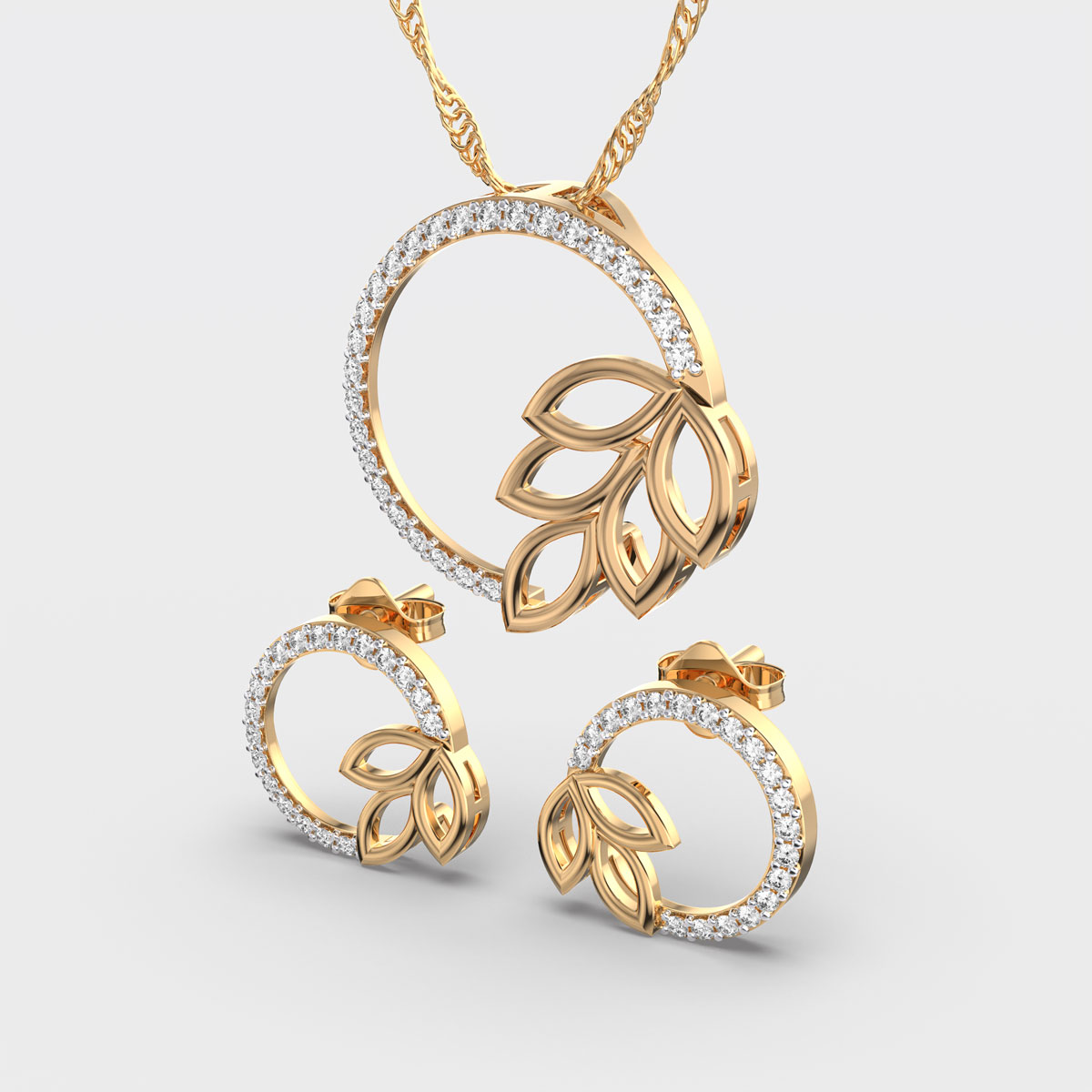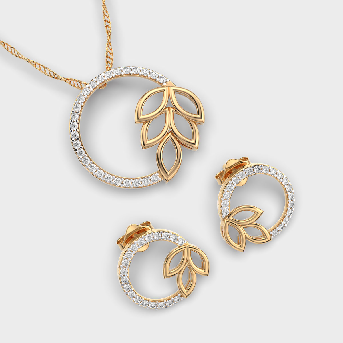 Elegant Leaf Diamond Pendant Set