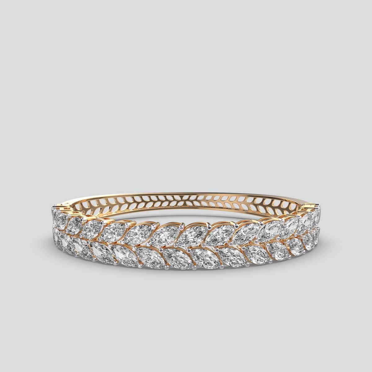 This Fabulous Fern Marquise Diamond Clustered Bracelet is a classy accessory that adds sparkle and sophistication to any outfit. Featuring carefully set diamonds that catch the light from every angle, this piece is perfect for elevating everyday looks or complementing special occasions. Designed to balance elegance with versatility, a diamond bracelet is a timeless piece that reflects style, luxury, and enduring charm, making it a must-have addition to any jewellery collection.