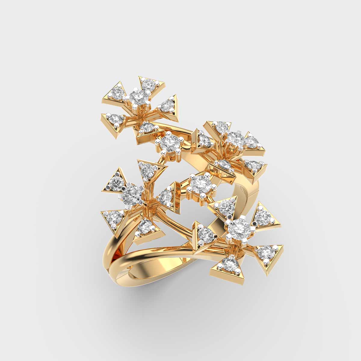 Fireworks Asymmetrical Diamond Encrusted Cocktail Ring