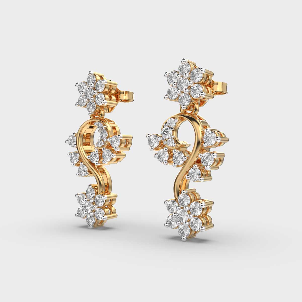 Flora Cluster Vine Diamond Dangler Earrings are a timeless jewellery essential, designed to add a touch of elegance and sparkle for women. Their versatile design makes them perfect for everyday wear, office settings, or special occasions, effortlessly complementing any outfit. Crafted to balance subtlety with brilliance, diamond studs offer a refined yet striking look that suits all styles and personalities. A classic accessory that combines sophistication, versatility, and enduring charm.