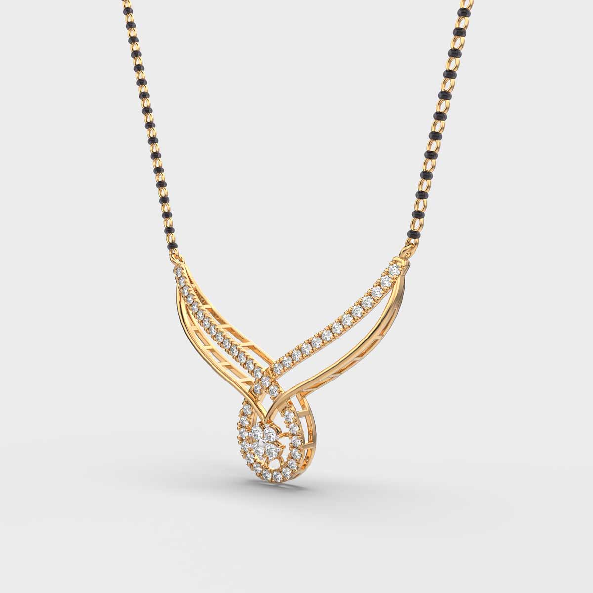The Flora in a Drop Mangalsutra Pendant (With Chain)  is a timeless symbol of elegance and sophistication, designed to add sparkle and charm to any outfit. Carefully set diamonds create a radiant shimmer that catches tradition from every angle, making it perfect for daily wear, festive occasions, or special celebrations. Versatile and stylish, a diamond pendant complements both modern and classic looks, offering a graceful blend of luxury, brilliance, and enduring beauty.