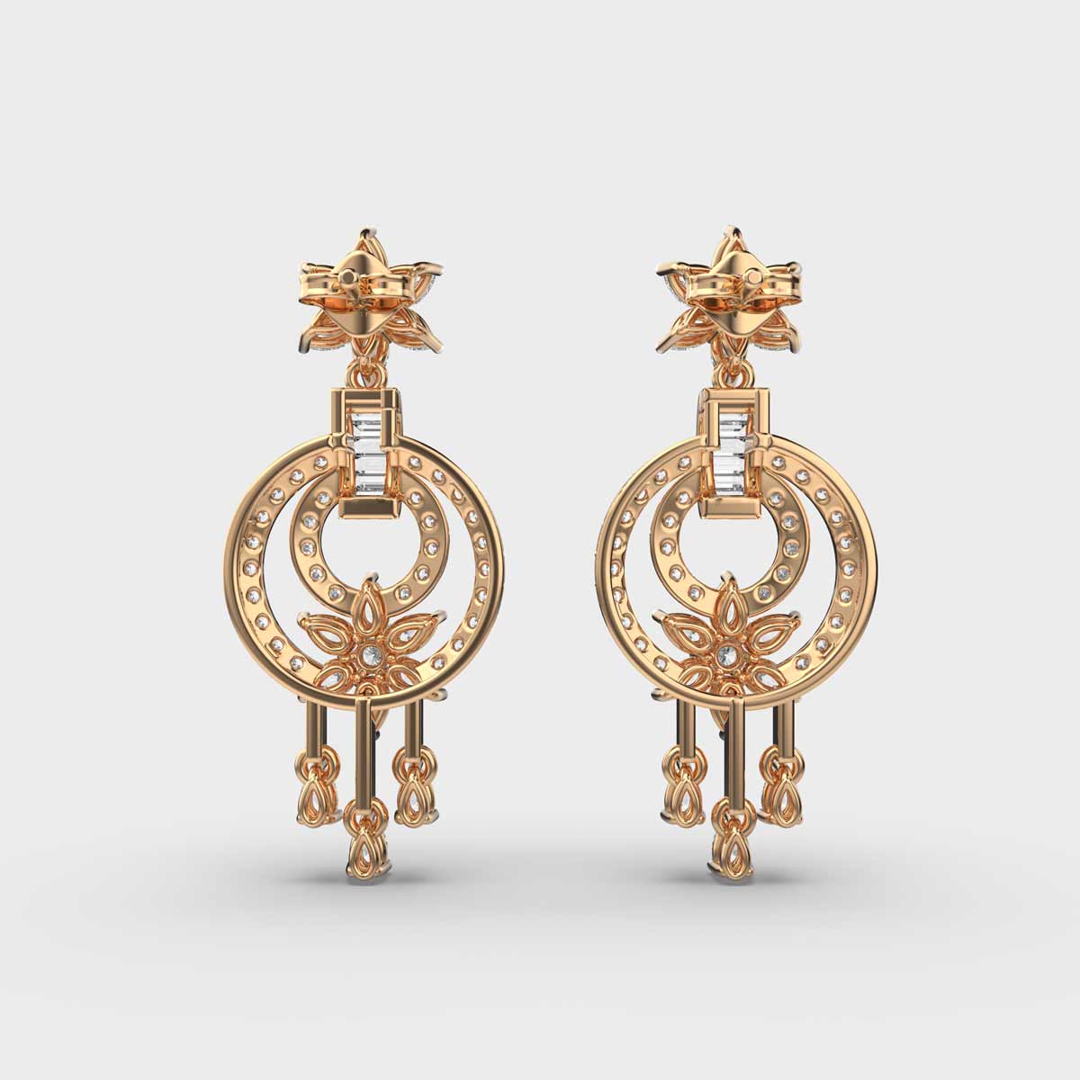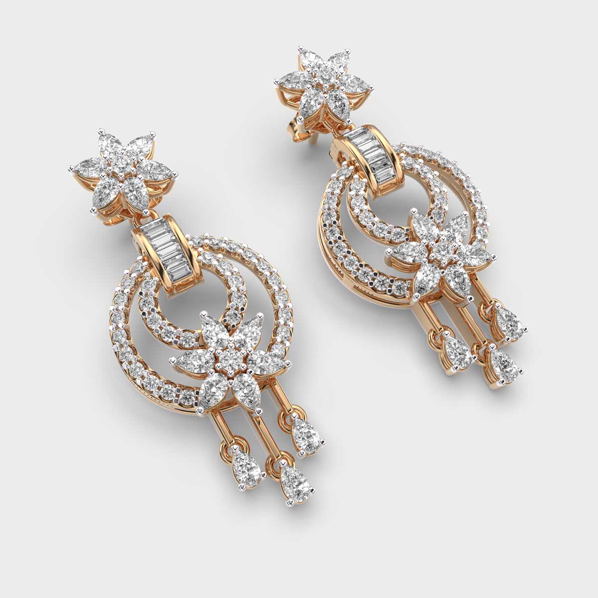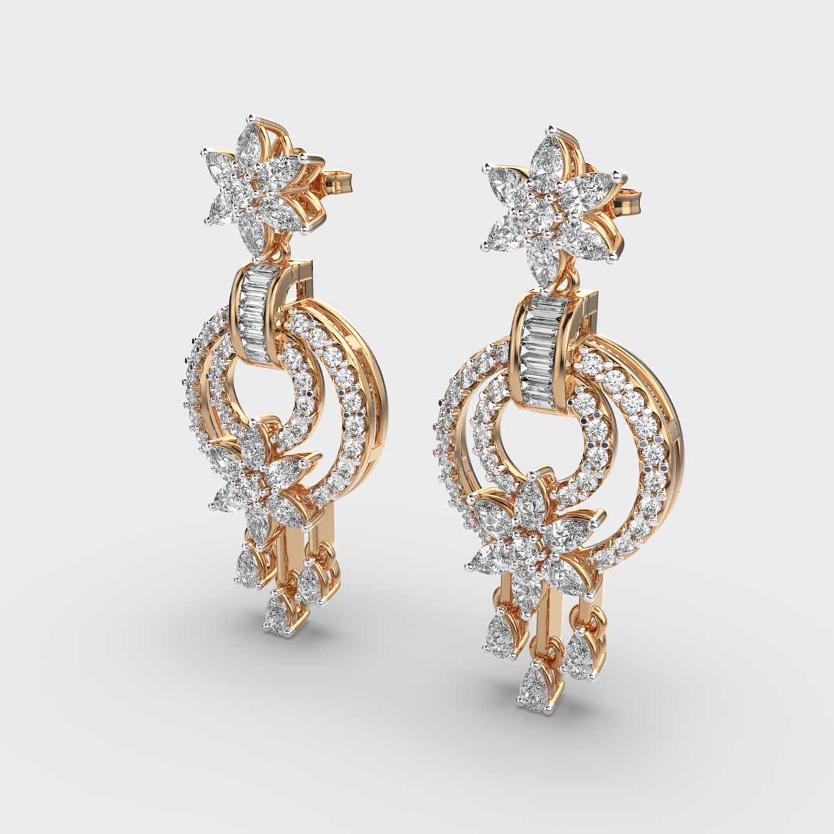 Floral Fantasy Diamond-Encrusted Dangler Earrings are the best jewellery essential, designed to add a touch of elegance and sparkle. Their versatile design makes them perfect for everyday wear, office settings, or special occasions, effortlessly complementing any outfit. Crafted to strike a balance between subtlety and brilliance, diamond studs offer a refined yet striking look that suits all styles and personalities. A classic accessory that combines sophistication, versatility, and enduring charm.