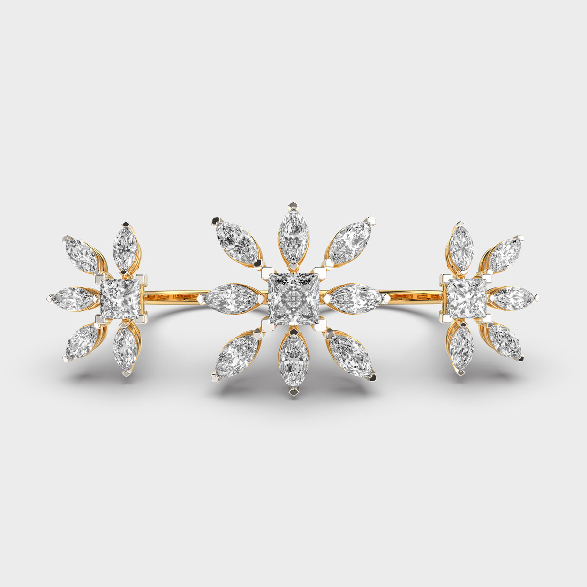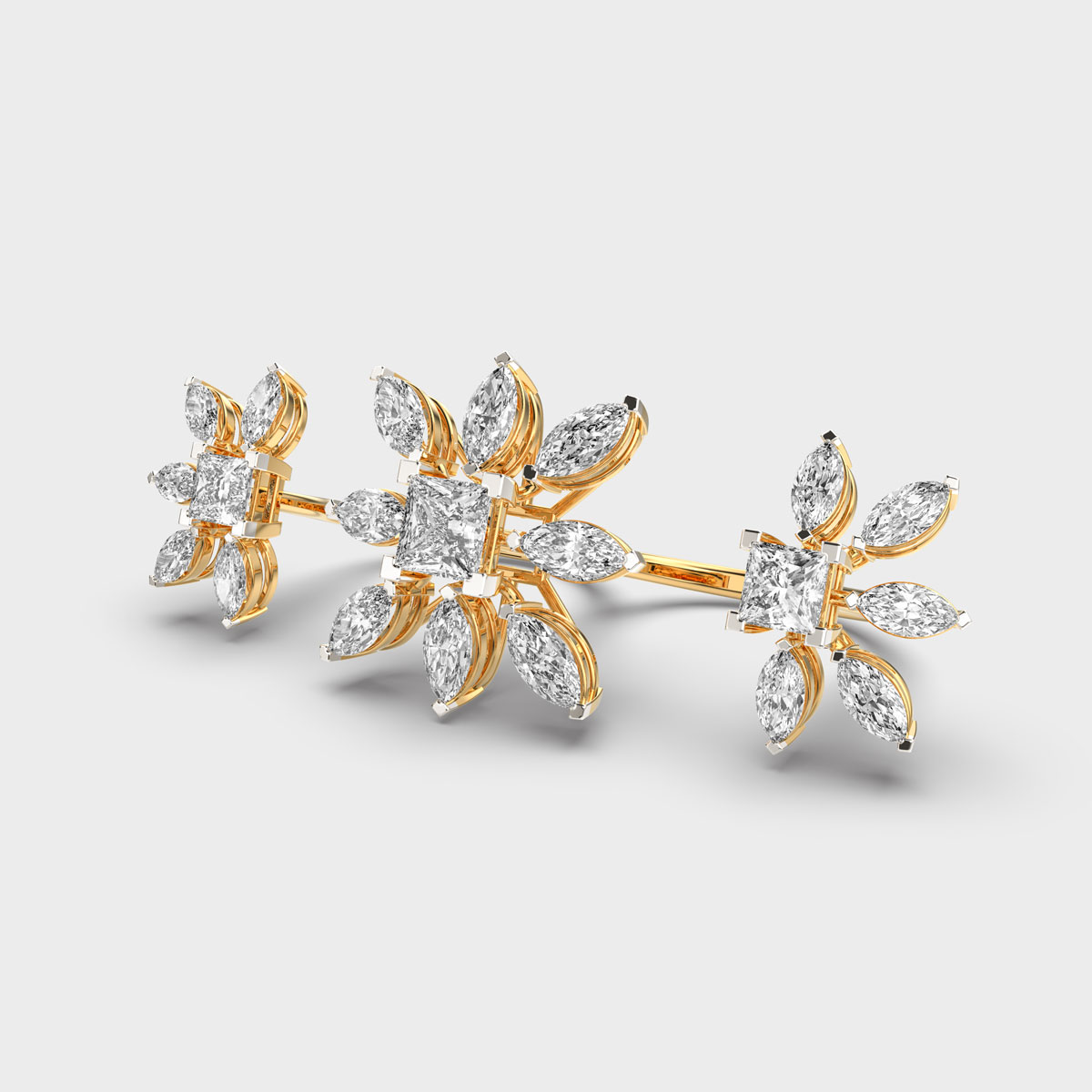 Floral Trio Cocktail Diamond Ring is a timeless piece of jewellery that combines elegance, sparkle, and sophistication. Designed to complement any style, it can be worn daily or for special occasions, adding a touch of brilliance to every look. Whether chosen as a gift of love, a symbol of commitment, or a personal statement, a diamond ring enhances grace and confidence, making it a versatile and cherished accessory in every woman’s collection