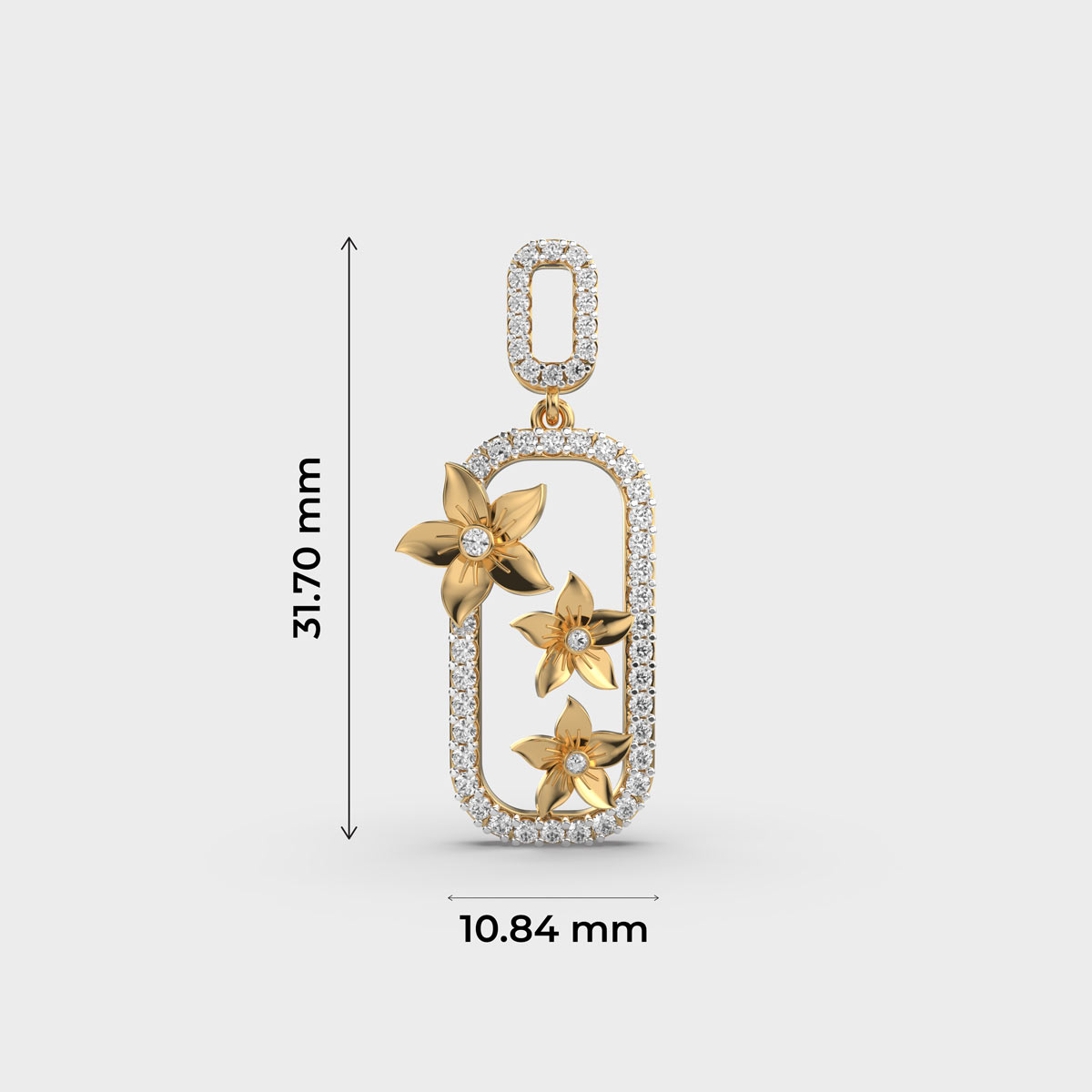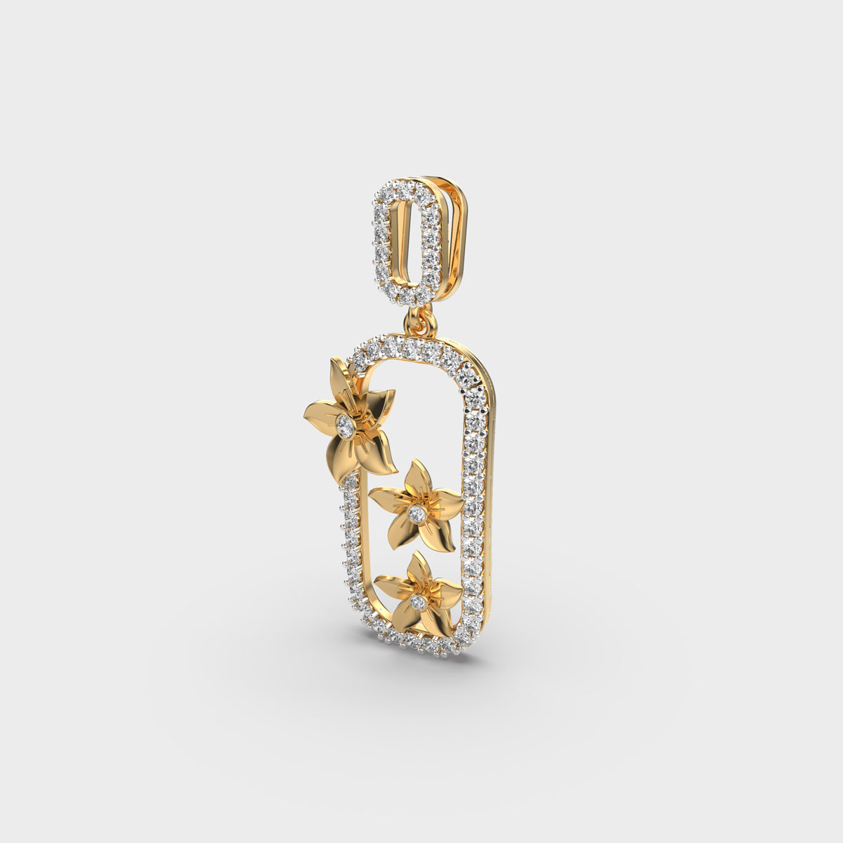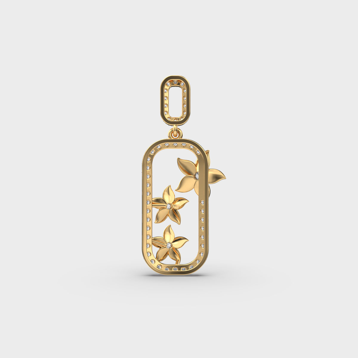 Flower Diamond Encrusted Frame Pendant Without Chain