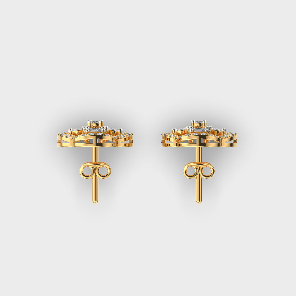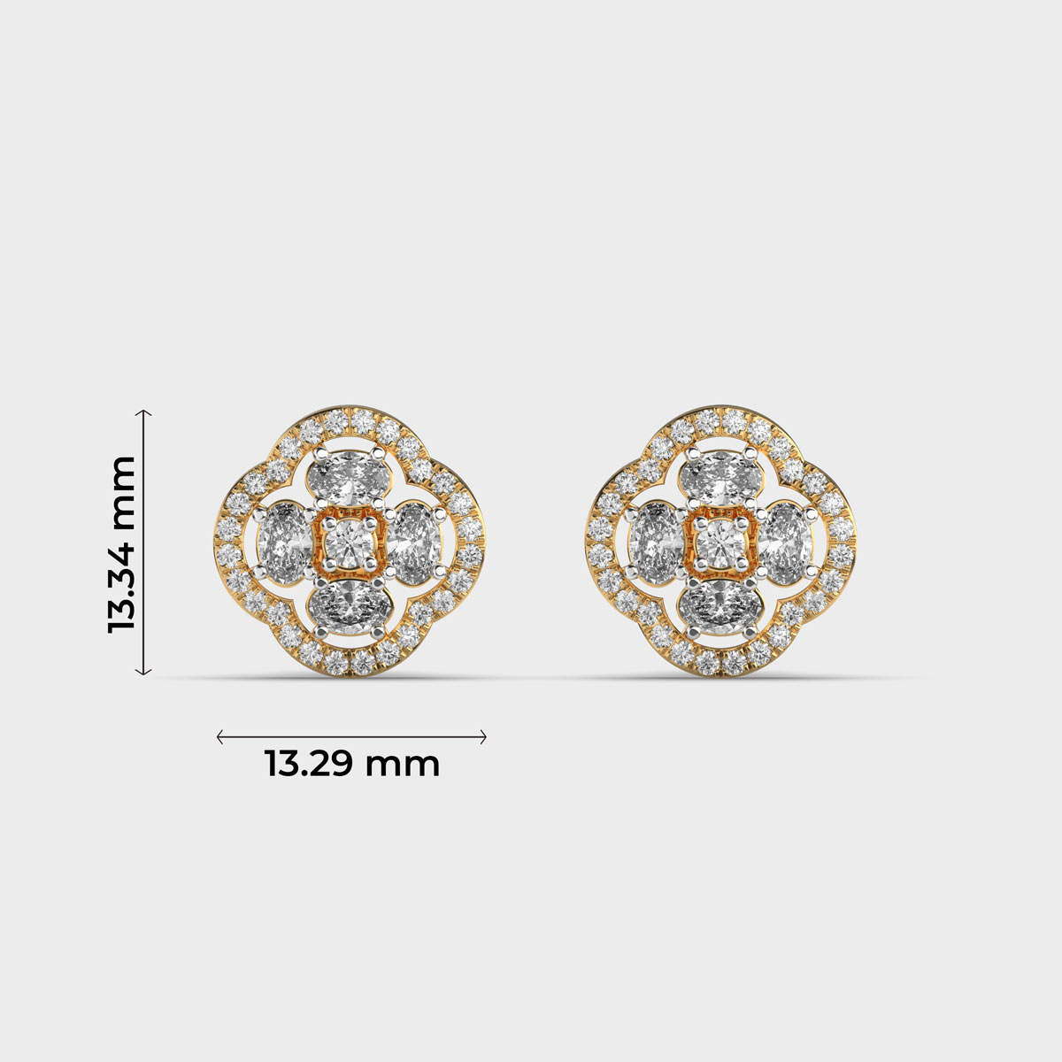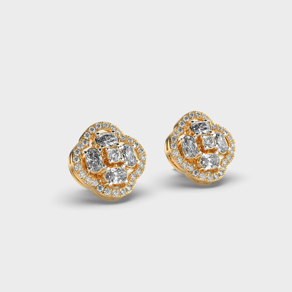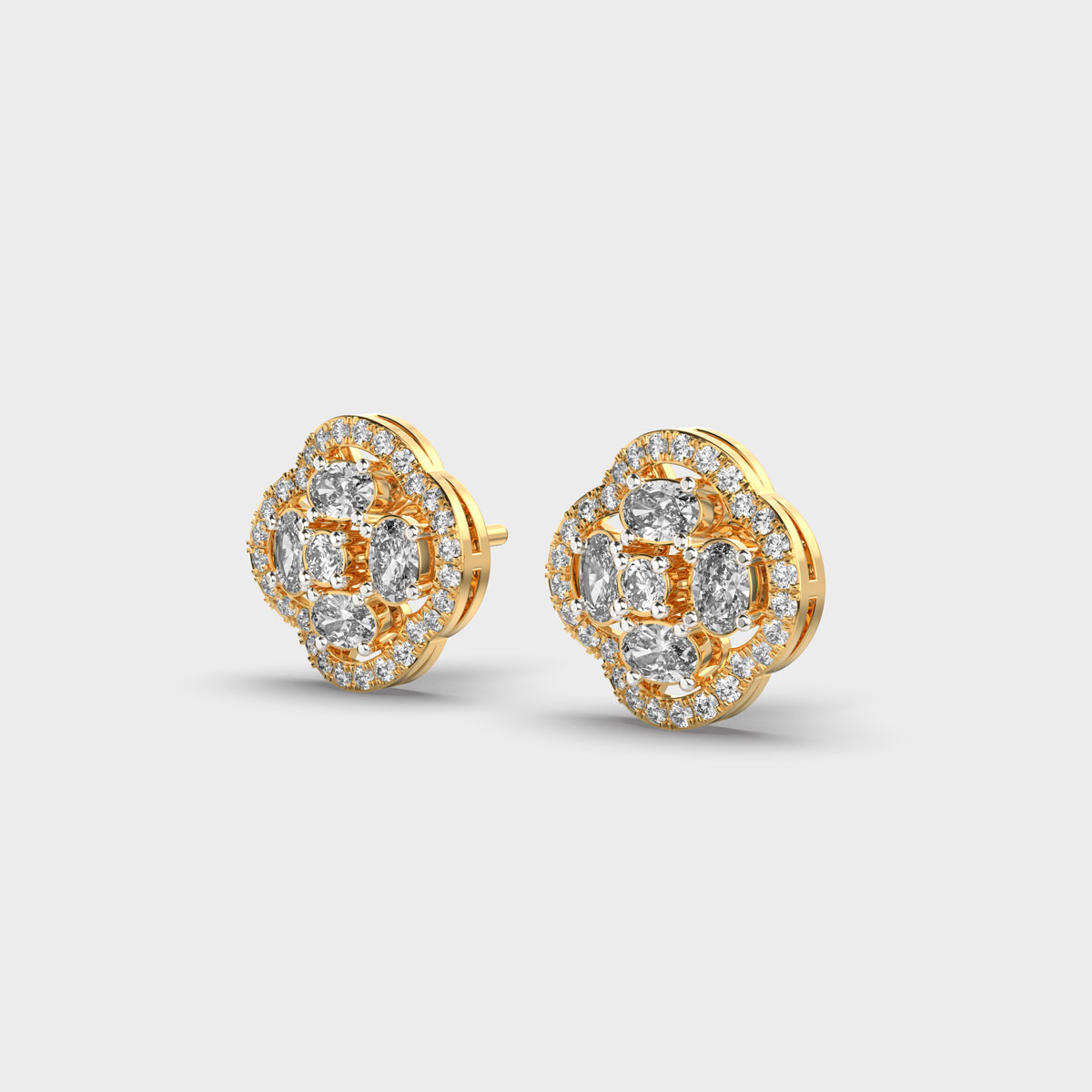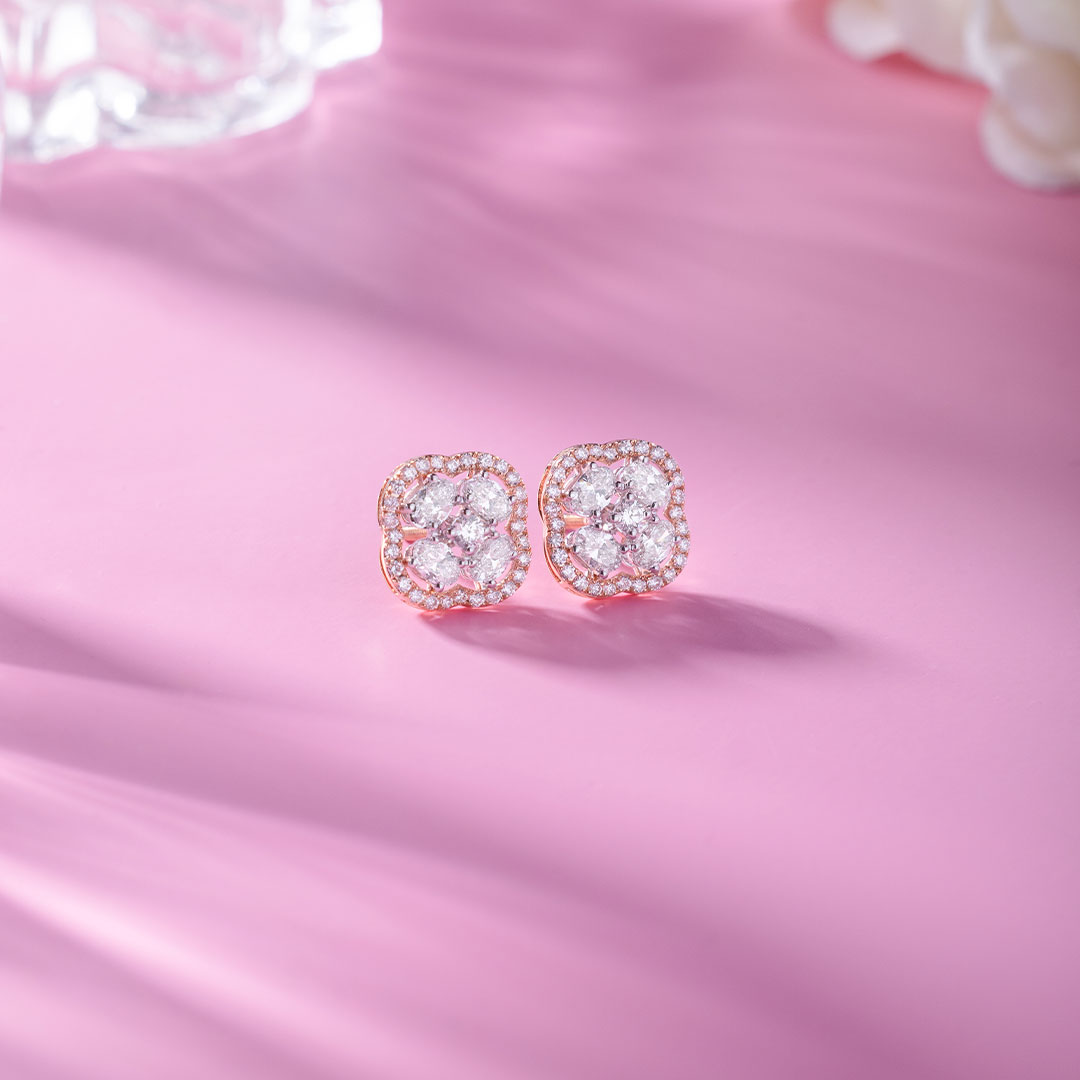 Flower with Four Petals Halo Diamond Earrings