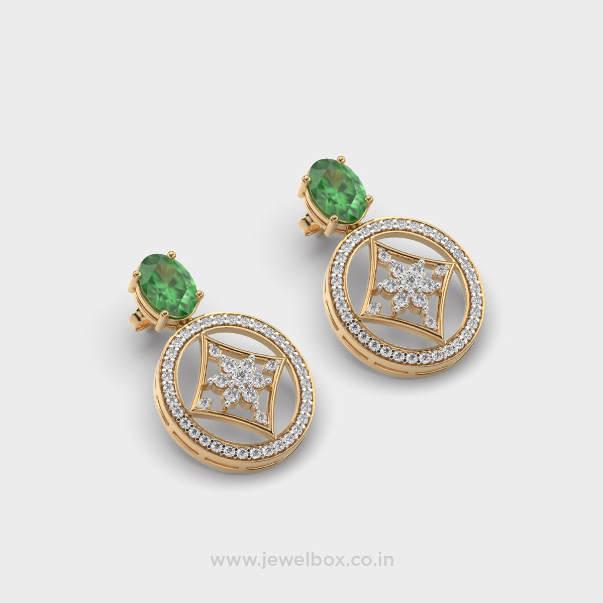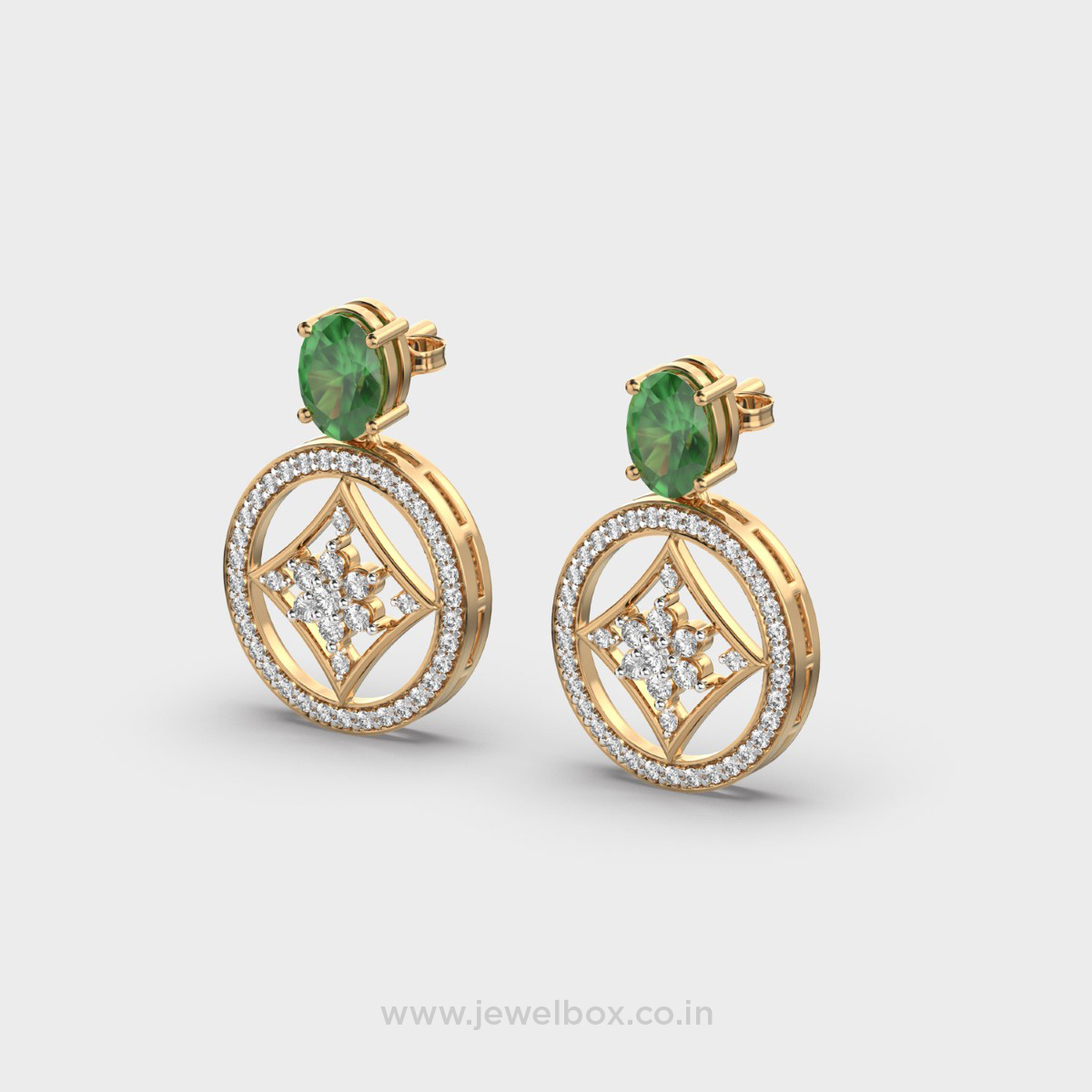 Genevia Green Stone Diamond Earrings