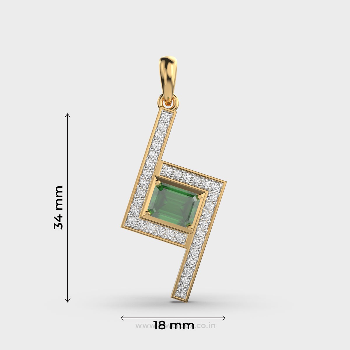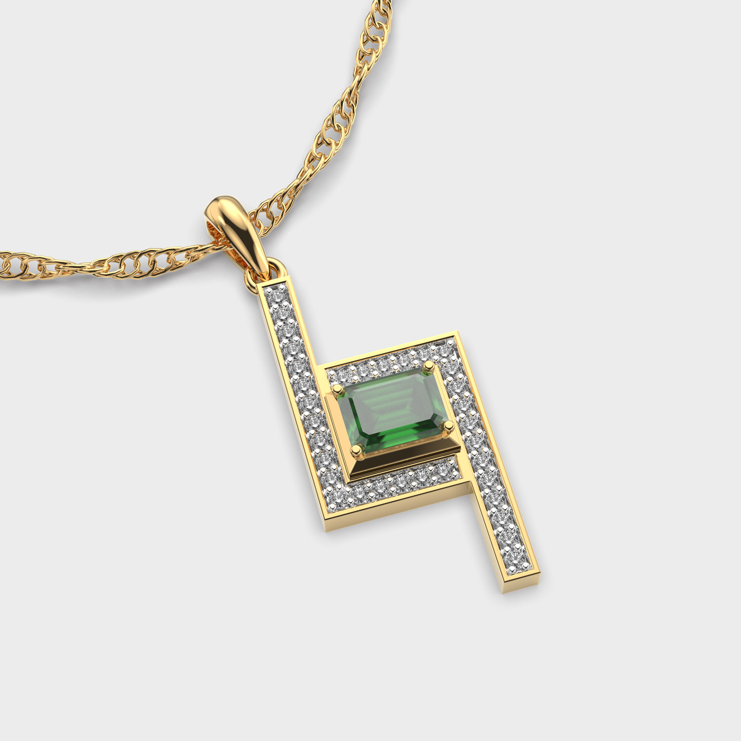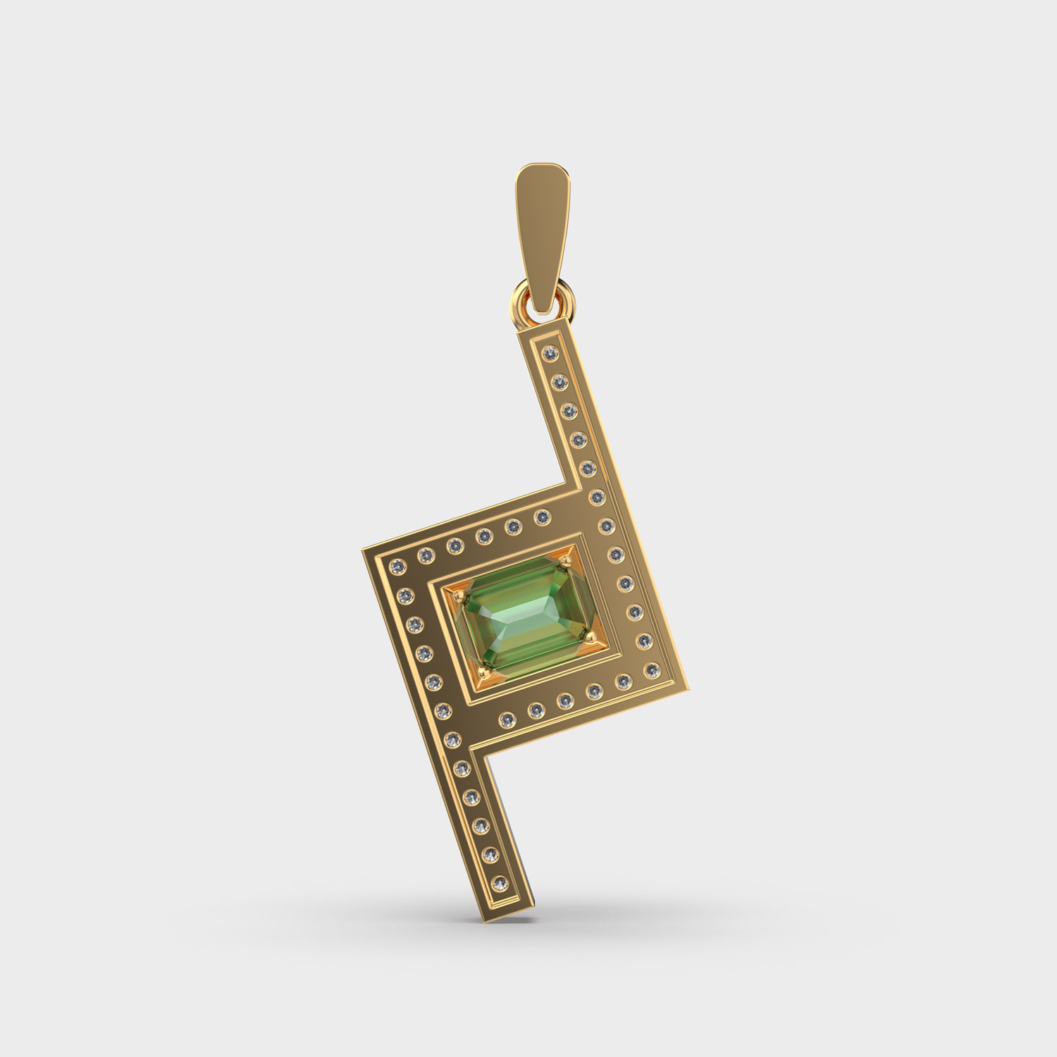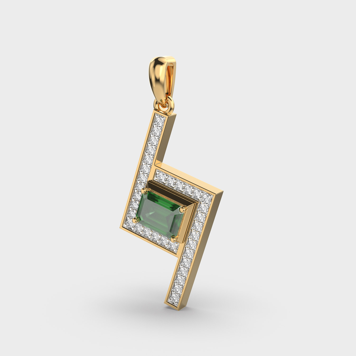 Geometric Green Stone Diamond Pendant Without Chain