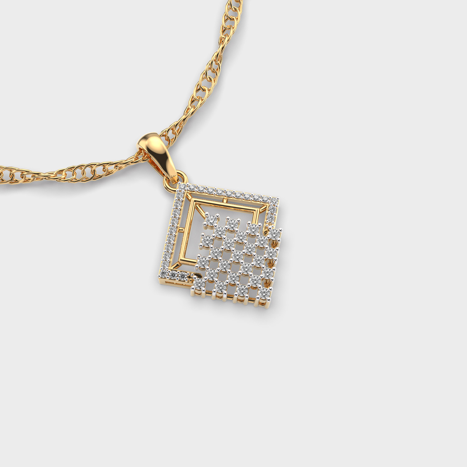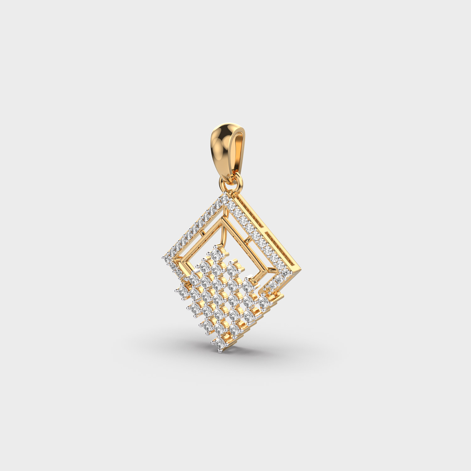 Geometric Square Diamond Encrusted Pendant Without Chain
