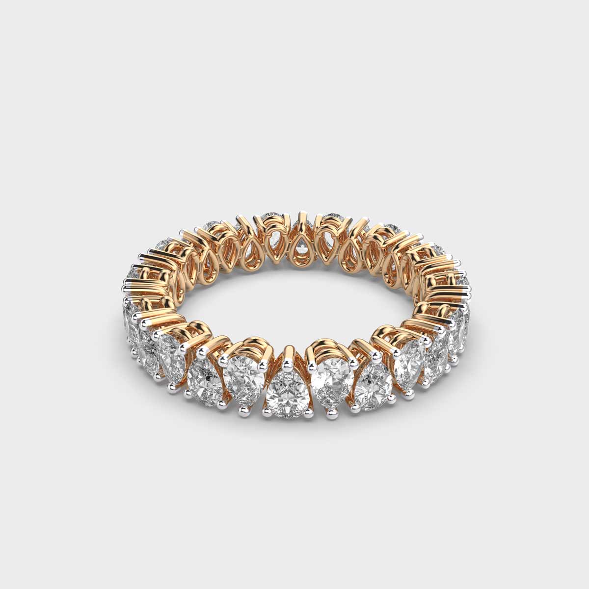 A symbol of timeless love, Glistening Beauty Pear Eternity Ring features a radiant solitaire diamond set in a classic band that highlights its brilliance. The simple yet refined design speaks of enduring bonds and cherished promises, making it a perfect choice for engagements, milestones, or everyday wear. Elegant in its minimalism and versatile in style, it’s a piece that celebrates love and happiness with sparkling simplicity.