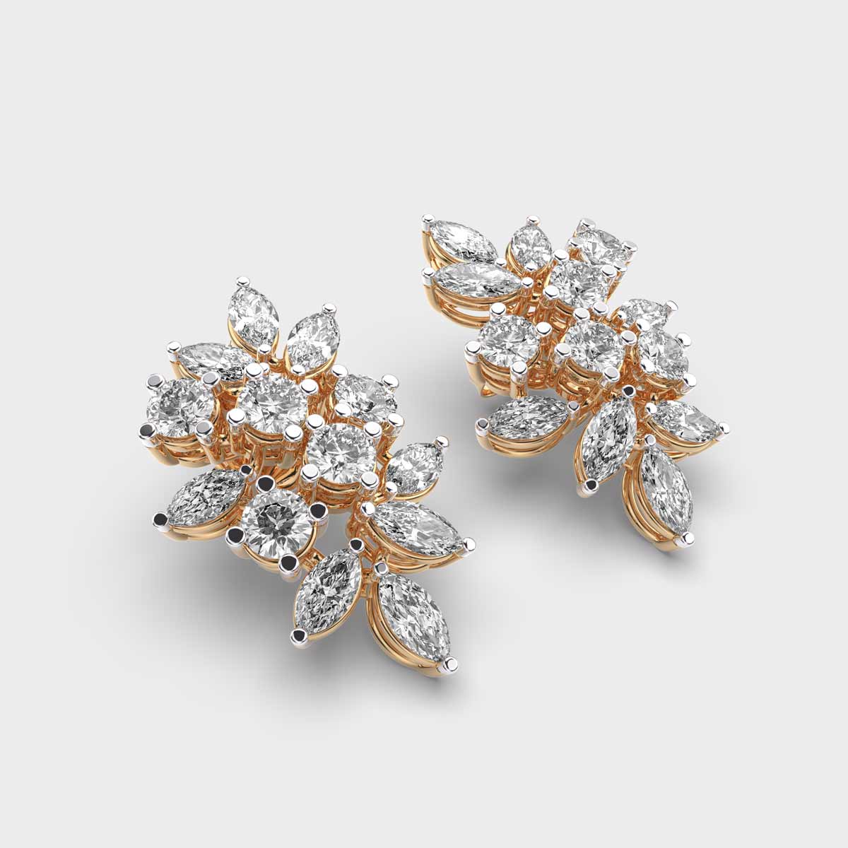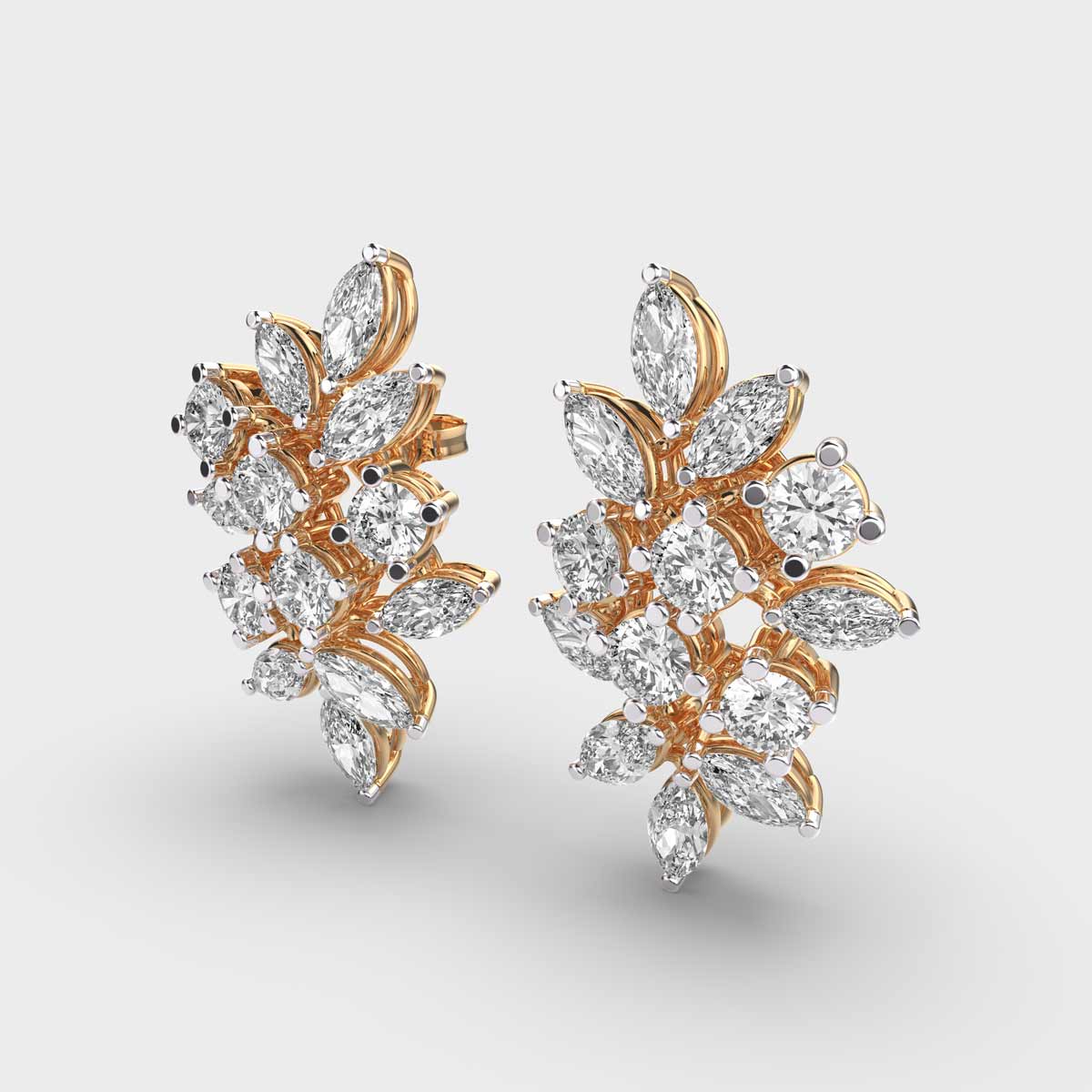 A celebration of artistry and allure, the Guldasta Diamond Earrings blend abstract design with striking brilliance. Set with marquise and solitaire-style lab-grown diamonds, this statement pair draws inspiration from a blooming bouquet, making it a perfect choice for festive soirées, cultural celebrations, or elevating your everyday elegance. Lightweight yet luxurious, Guldasta is where fine craftsmanship meets floral-inspired finesse.