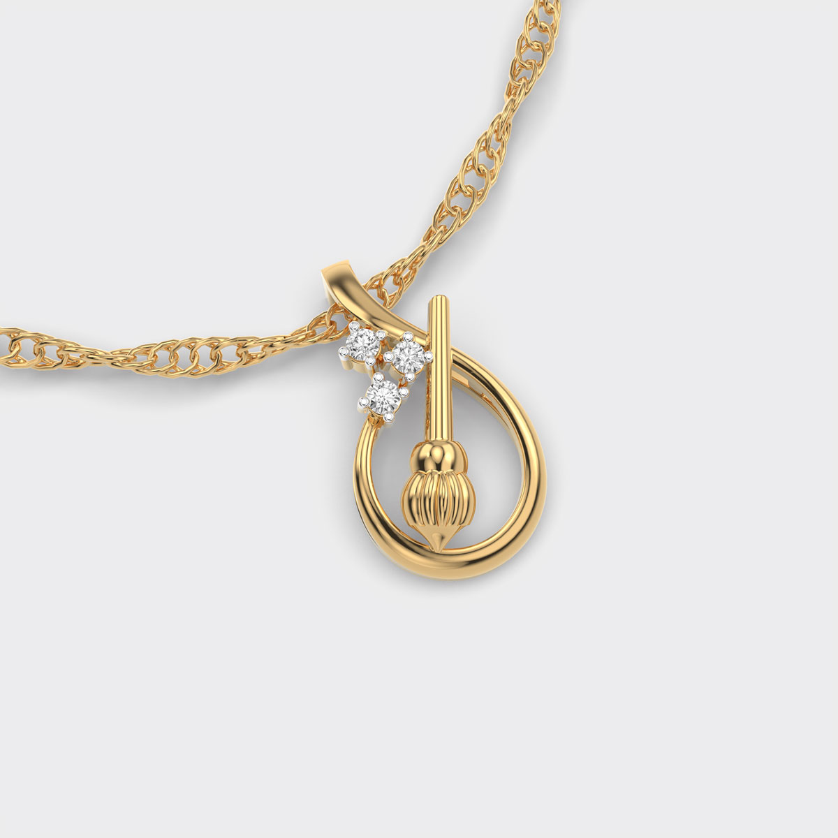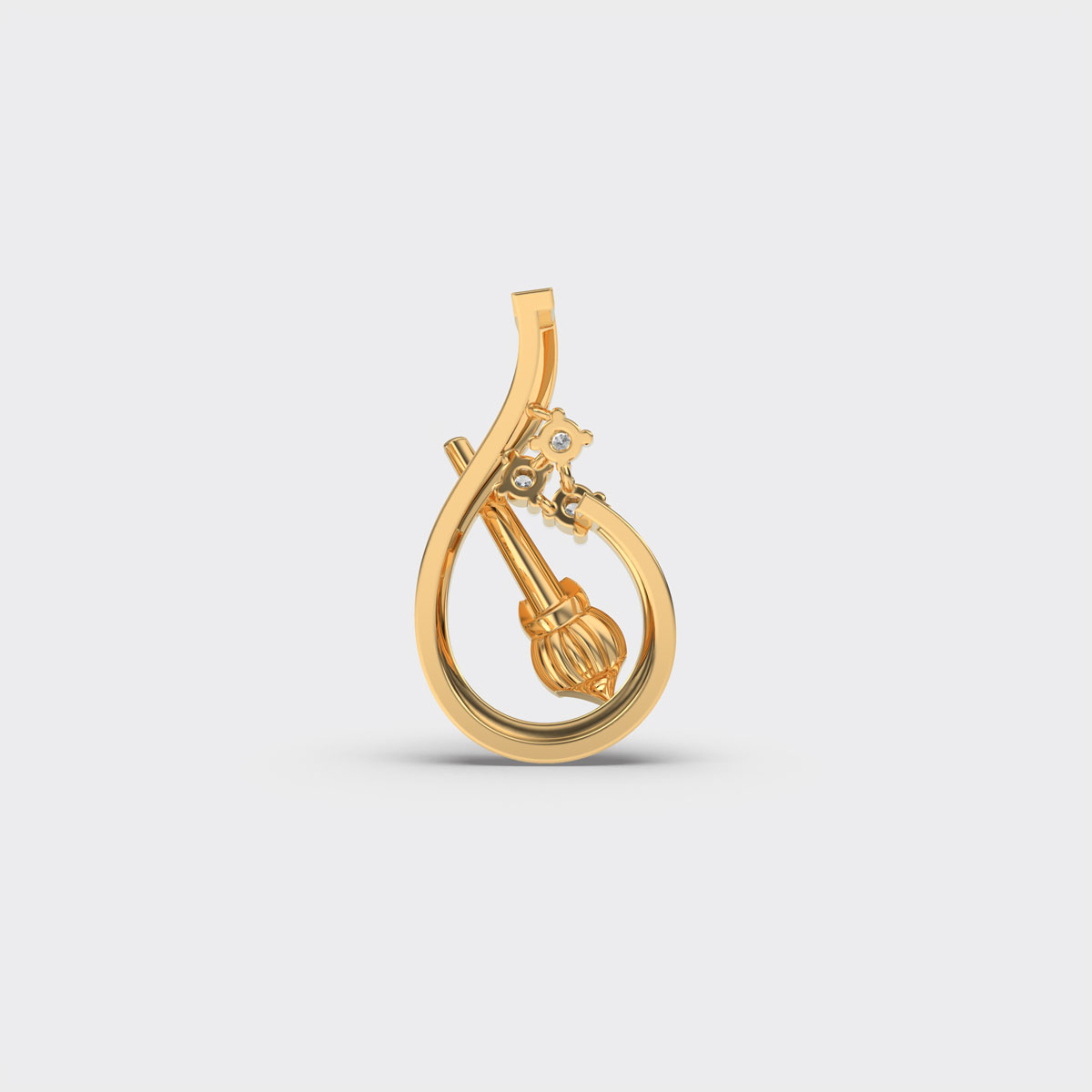 Powerful in symbolism and refined in design, the Hanuman’s Gada Diamond Pendant (Without Chain) represents strength, protection, and unwavering devotion. Inspired by the sacred gada carried by Lord Hanuman, this pendant transforms a revered emblem into a wearable expression of faith and resilience. The structured silhouette is enhanced with radiant diamonds that add brilliance while preserving the spiritual essence of the motif. Designed for everyday wear as well as special occasions, this diamond pendant serves as a meaningful keepsake and a reminder of inner courage. It pairs beautifully with both traditional attire and contemporary outfits, making it versatile yet deeply significant. The Hanuman’s Gada Diamond Pendant is ideal for those who wish to carry a symbol of power and positivity close to their heart.