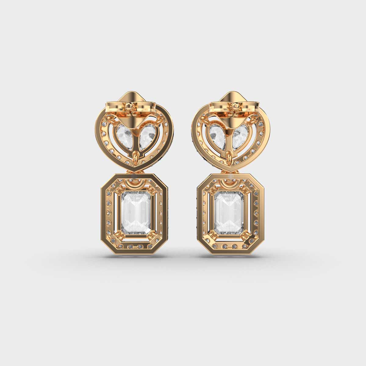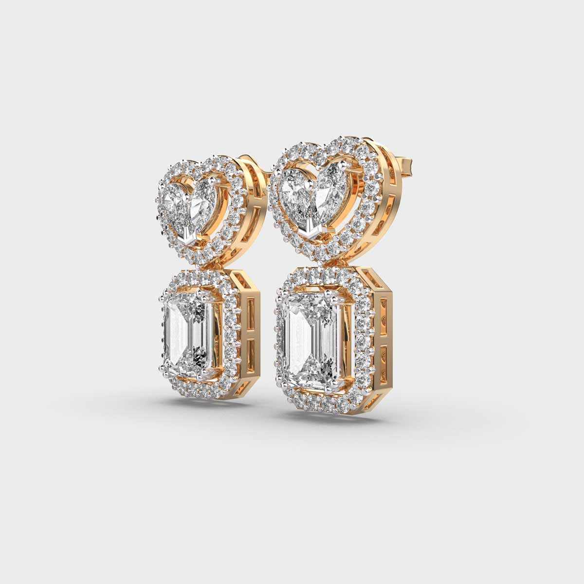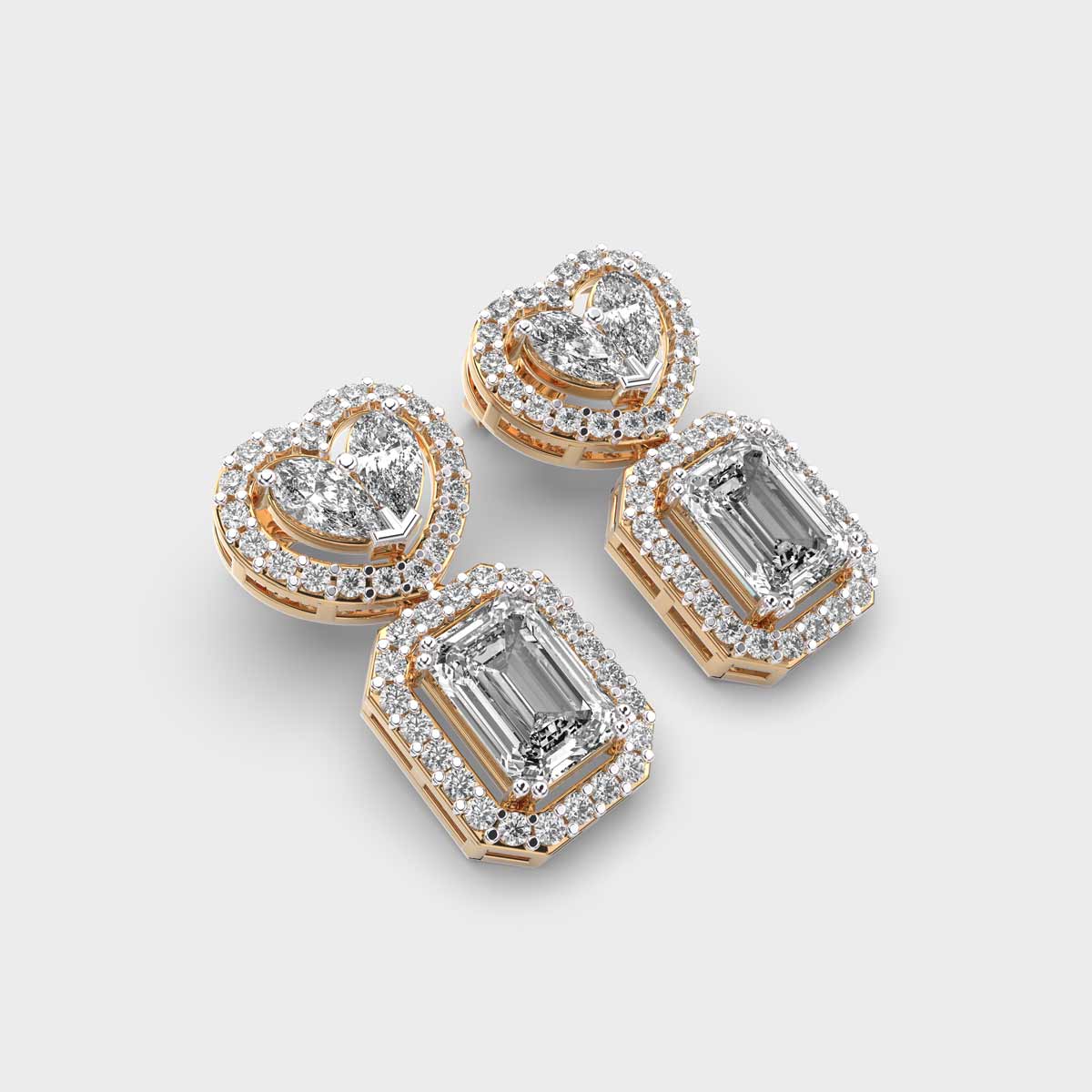 These Heart and Emerald Diamond Statement Drop Earrings are a timeless jewellery essential, designed to add a touch of elegance and sparkle for women. Their versatile design makes them perfect for everyday wear, office settings, or special occasions, effortlessly complementing any outfit. Crafted to balance subtlety with brilliance, diamond studs offer a refined yet striking look that suits all styles and personalities. A classic accessory that combines sophistication, versatility, and enduring charm.