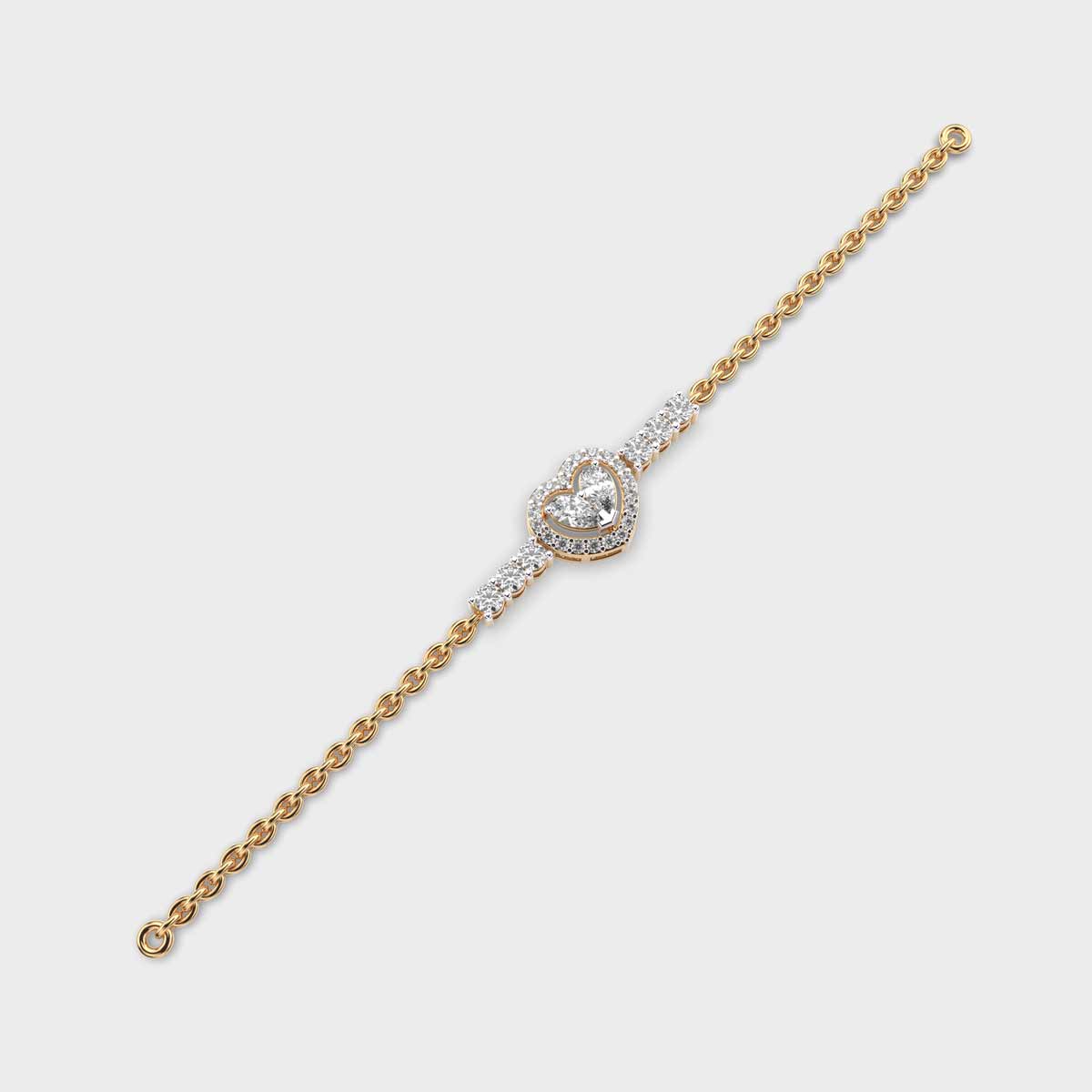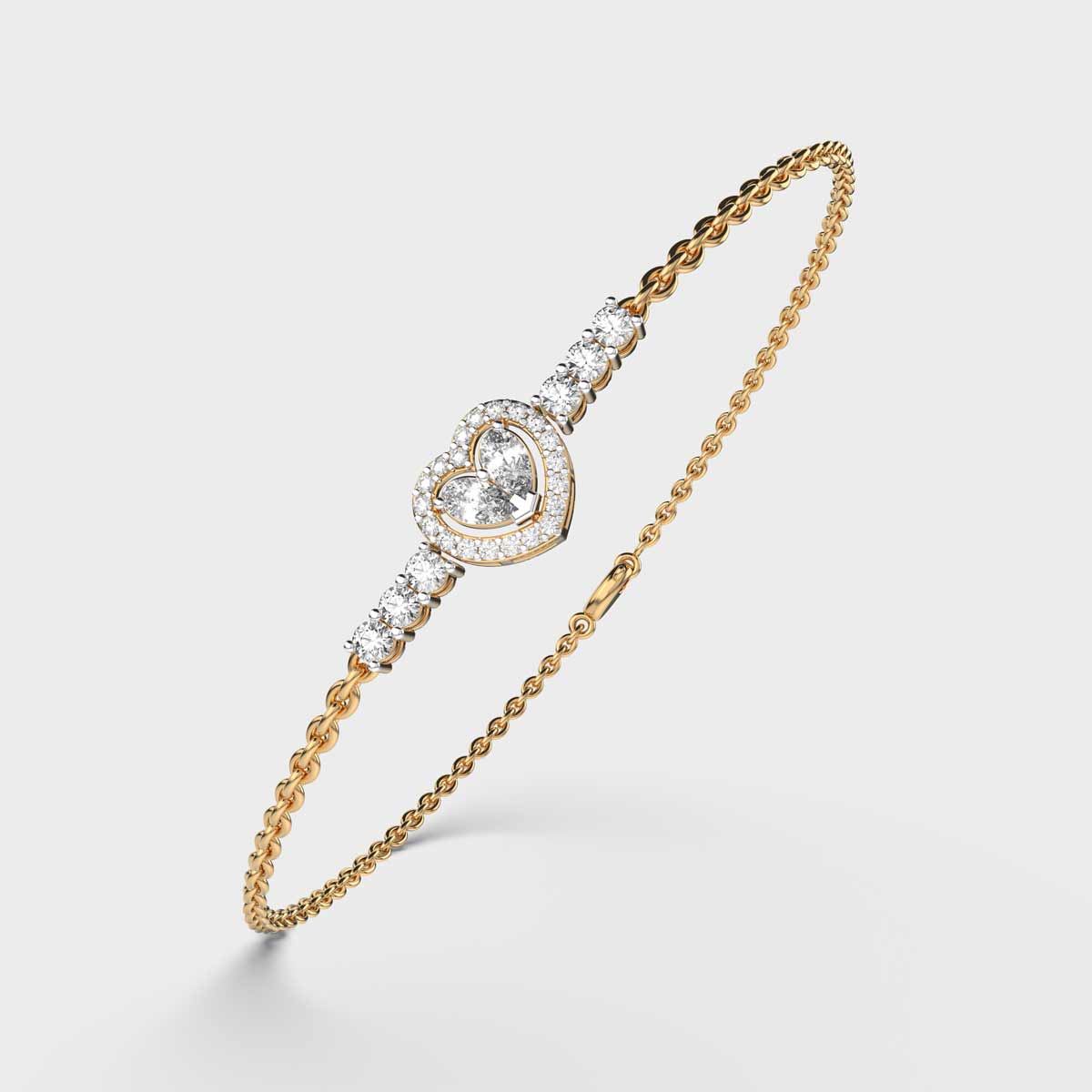Hearty Delight Diamond Bracelet is a graceful accessory that adds sparkle and sophistication to any outfit. Featuring carefully set diamonds that catch the light from every angle, this piece is perfect for elevating everyday looks or complementing special occasions. Designed to balance elegance with versatility, this diamond bracelet is a timeless piece that reflects style, luxury, and enduring charm, making it a must-have addition to any jewellery collection.