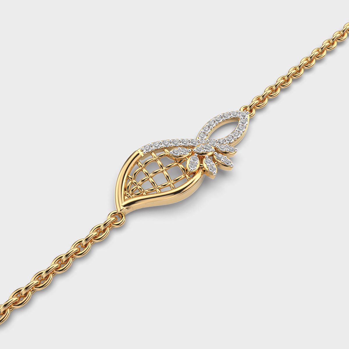 Labyrinth Of Leaves Diamond Bracelet is a graceful accessory that adds sparkle and sophistication to any outfit. Featuring carefully set diamonds that catch the light from every angle, this piece is perfect for elevating everyday looks or complementing special occasions. Designed to balance elegance with versatility, a diamond bracelet is a timeless piece that reflects style, luxury, and enduring charm, making it a must-have addition to any jewellery collection