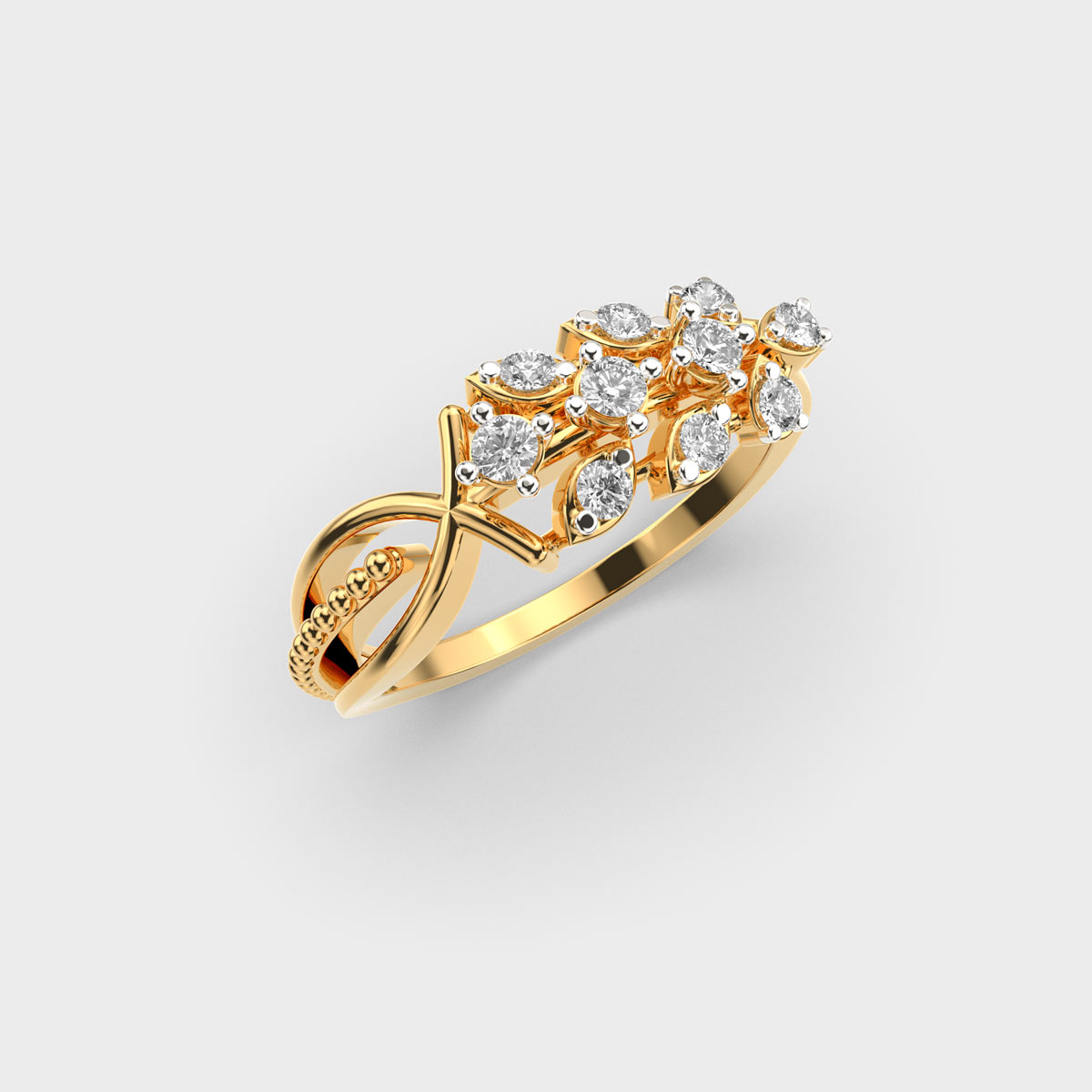 Delicate and captivating, Looped Blossom Round Diamond Ring ring features a looped floral design accented with sparkling round diamonds. Its graceful curves and intricate detailing make it perfect for adding a touch of elegance to everyday outfits or special occasions. A timeless piece of diamond jewellery, it blends feminine charm with lasting brilliance.