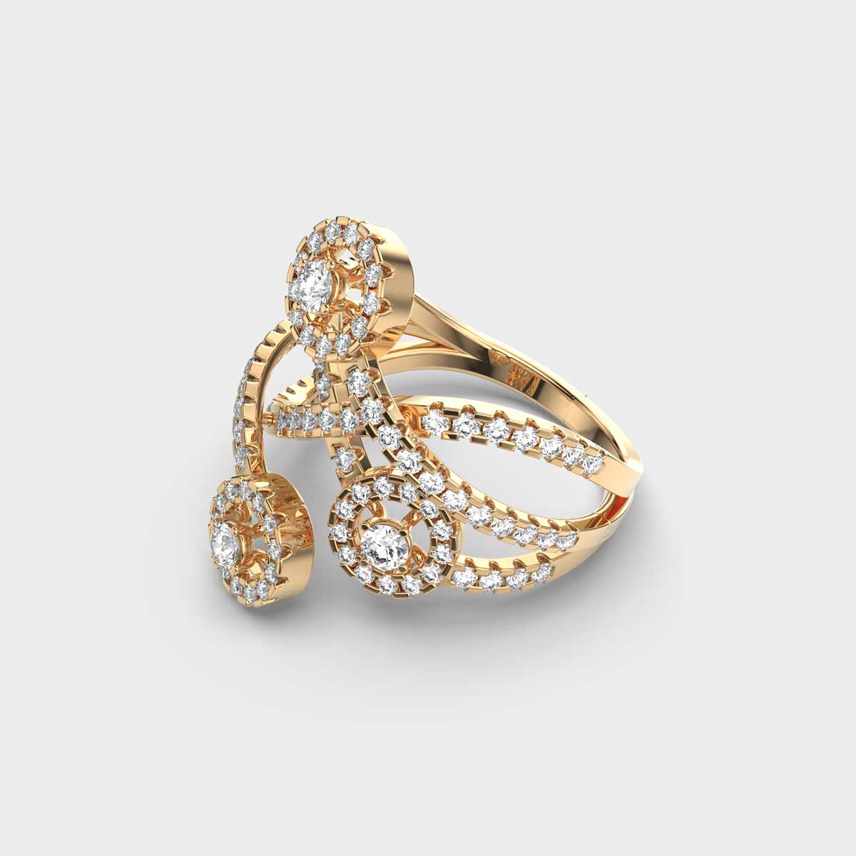 Bold yet graceful, this piece belongs to the realm of cocktail glamour, made to turn heads at evening soirées, festive dinners, and nights of celebration. Its artistic silhouette captures the spirit of abstract design, while the intense sparkle makes it a favourite among party-ready jewels.