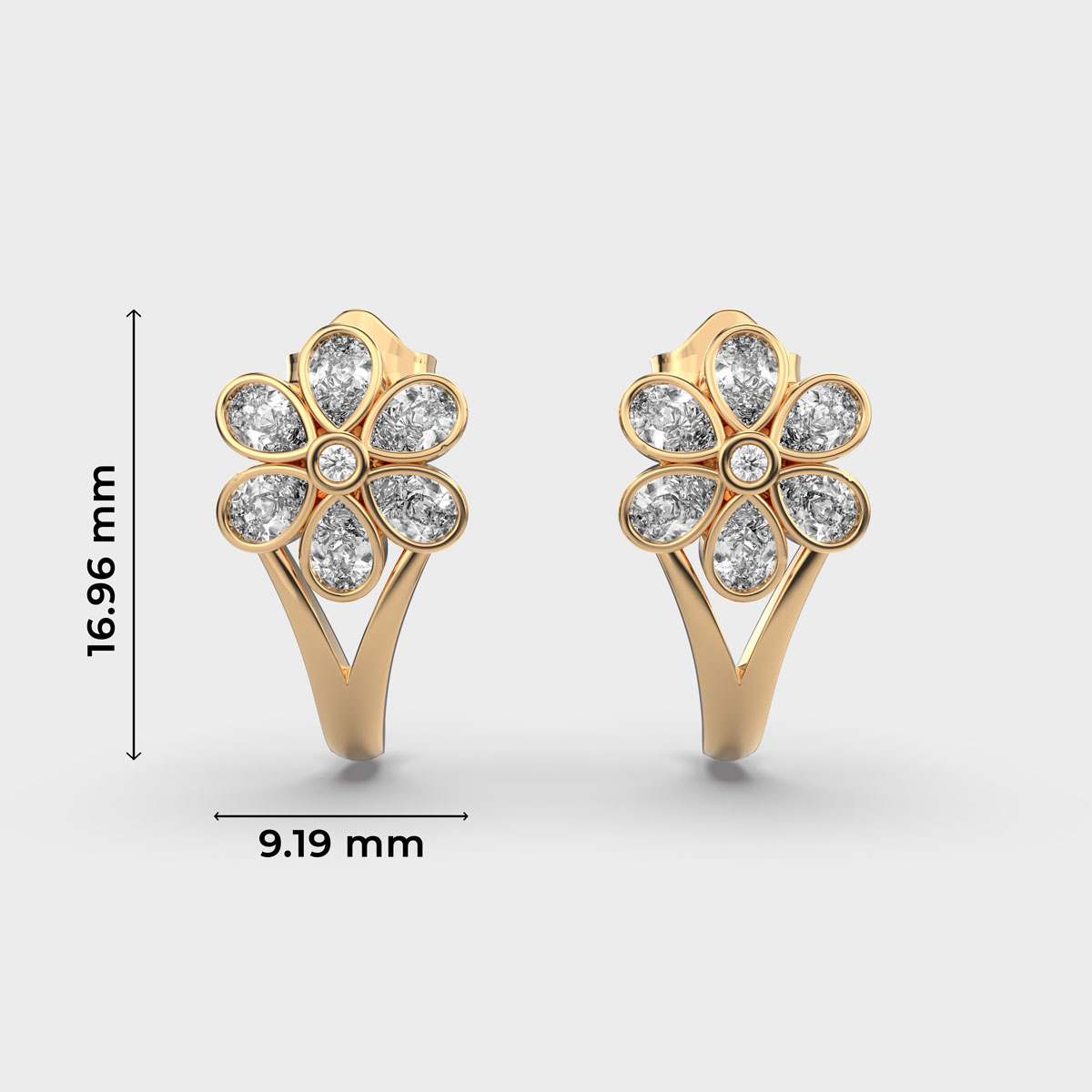 Merry Minimal Floral Diamond Encrusted Hoop Studs