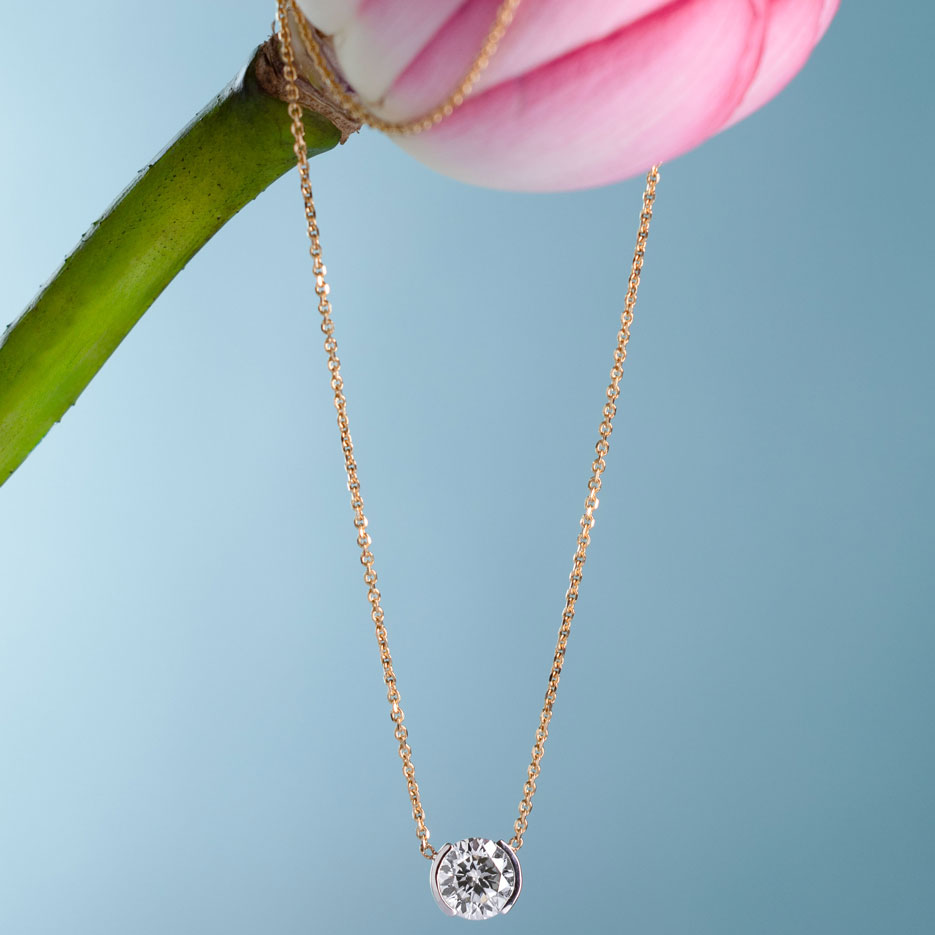 Minimalist Padma Cut Diamond Solitaire Pendant with Chain