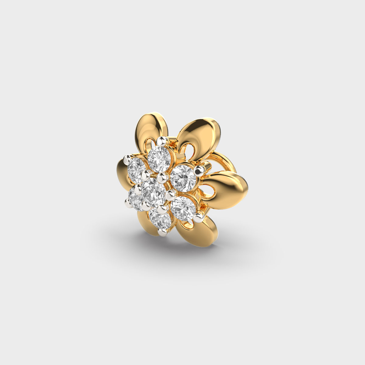 Perfected Petal Flower Diamond Nosepin is a delicate and elegant accessory that adds subtle sparkle and charm to any look. Crafted with precision, the sparkling diamond enhances its elegant design, making it perfect for both daily wear and special occasions. Lightweight and versatile, a diamond nosepin combines tradition with contemporary style, serving as a timeless piece that reflects personal elegance and refined taste.