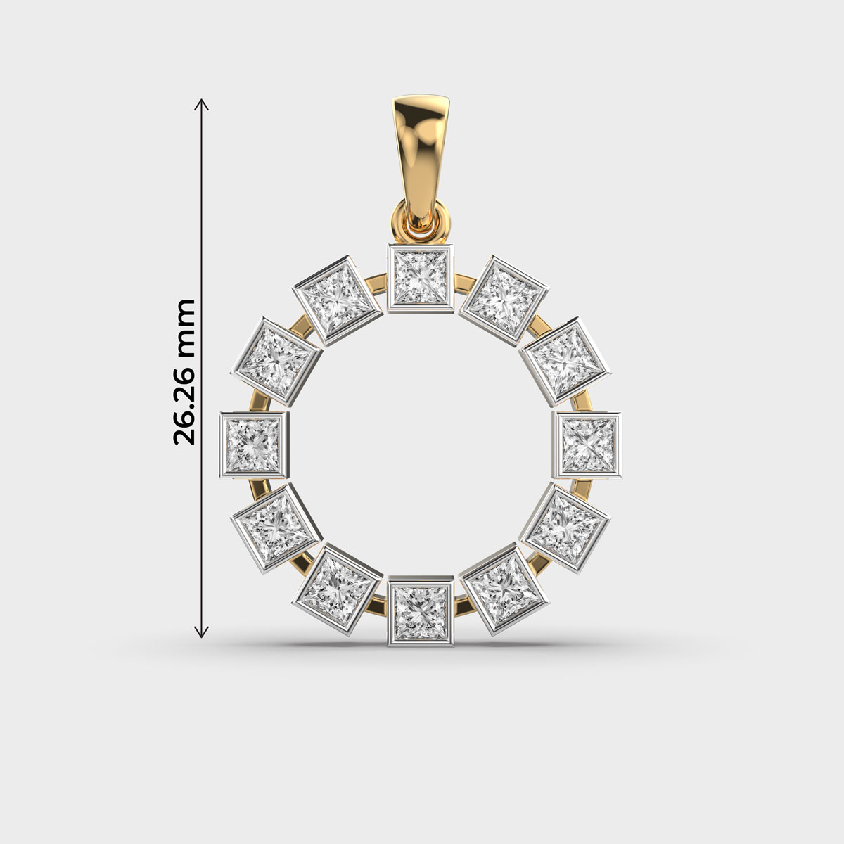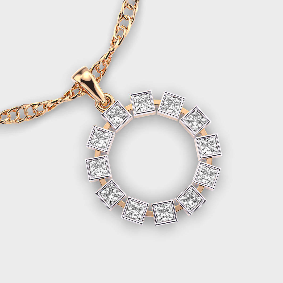 Pretty Square Princess Cut Diamond Pendant Without Chain