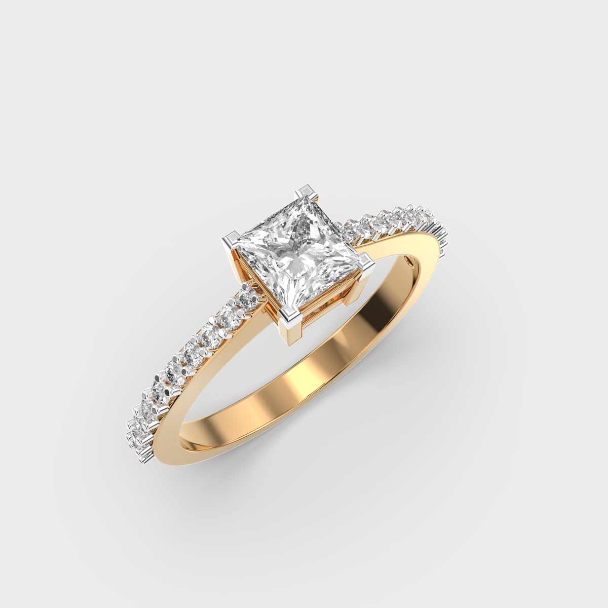 Echoing the grandeur of royal traditions, the Princess Cut Diamond Pave Band Ring is adorned with radiant diamonds that capture a regal charm. Its intricate design reflects timeless Indian artistry, making it a striking choice for festive celebrations or statement occasions. A jewel that embodies majesty and heritage, it stands as a true symbol of splendour.