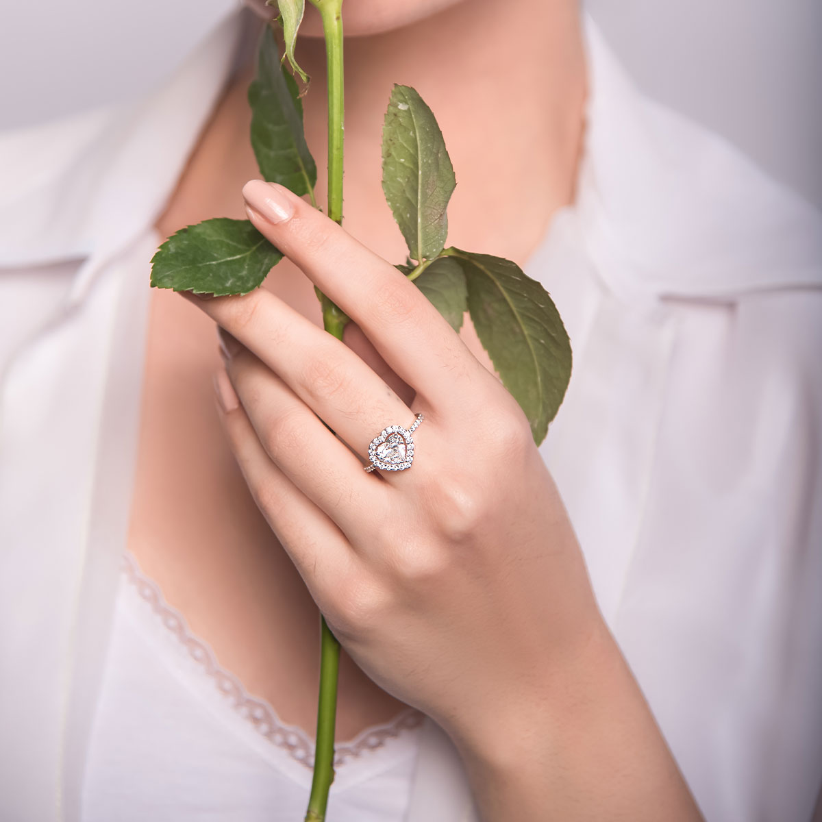 Queen Heart Shaped Diamond Solitaire Halo Ring