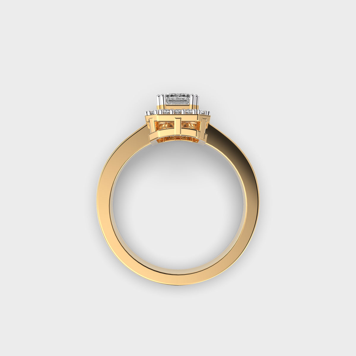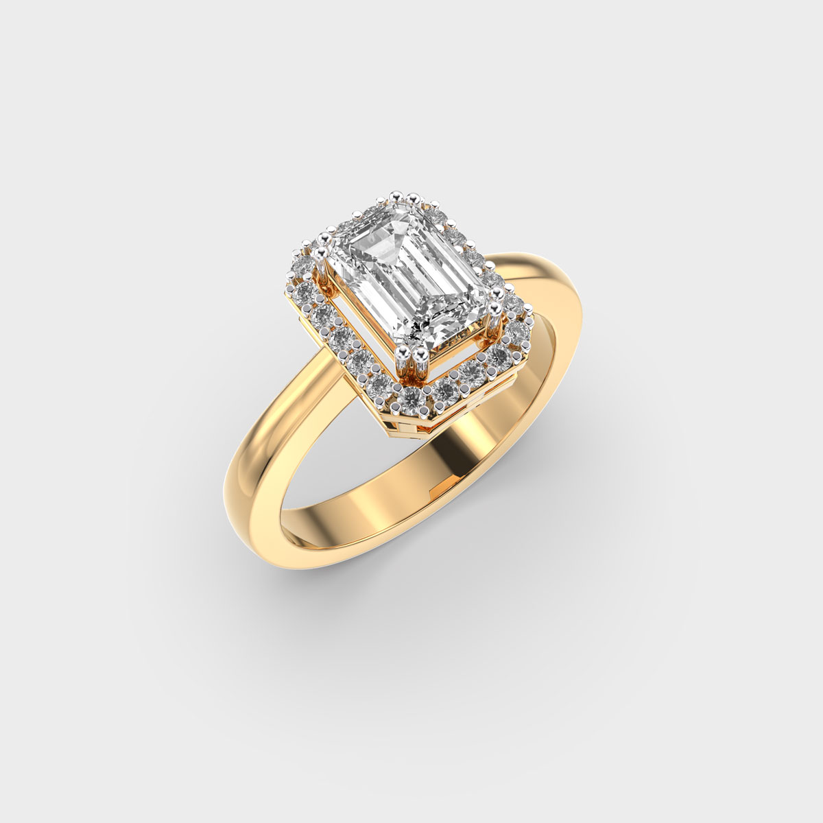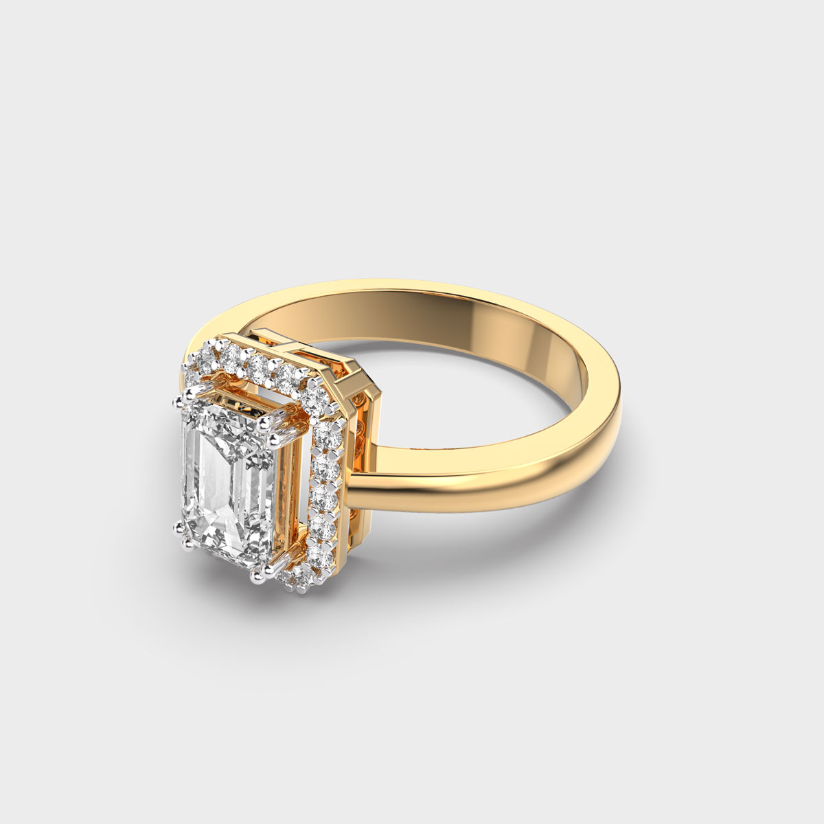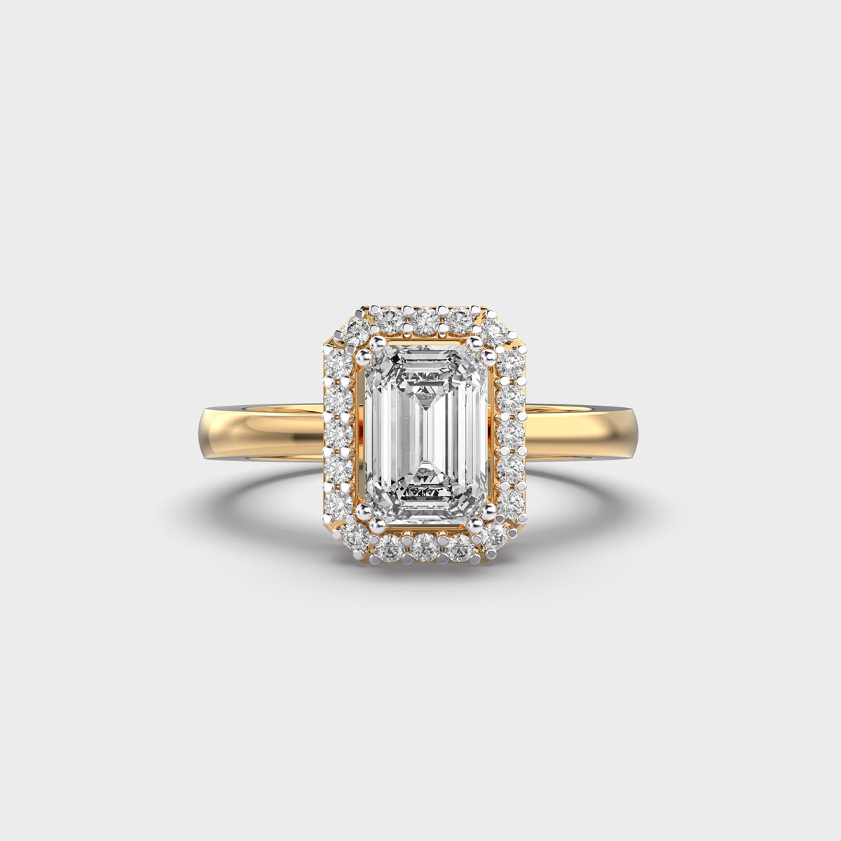 A modern take on a classic, the Radiant Solitaire Diamond with Halo Ring for Women features a sleek band that adds movement and elegance to the design. The single diamond at its centre captures light with every turn, while the twisted band enhances its brilliance, creating a striking yet refined look. Perfect for those who appreciate contemporary style with timeless appeal, this ring pairs beautifully with both traditional and modern outfits, making it a versatile addition to any jewellery collection.