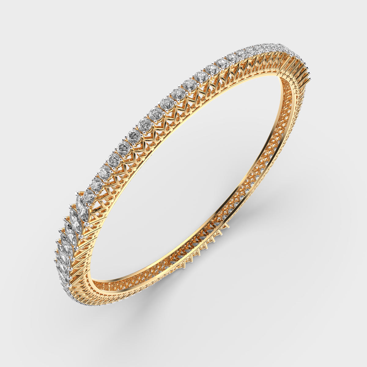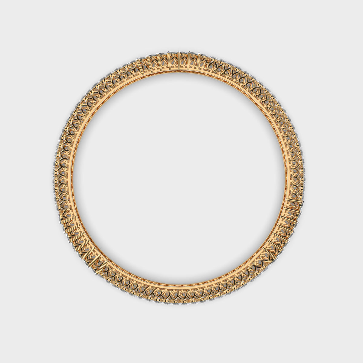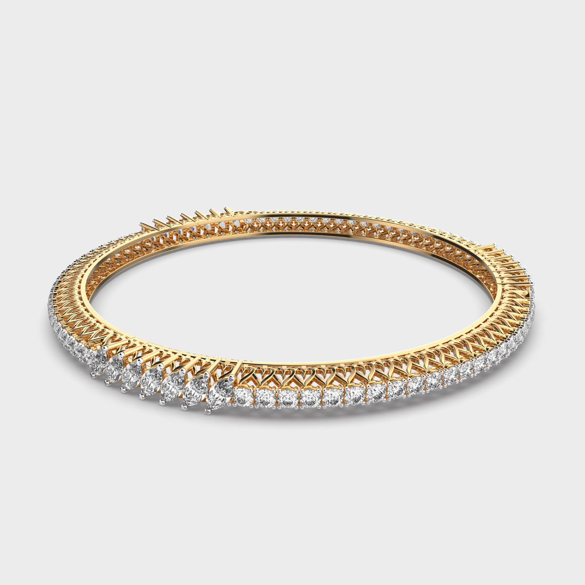 Exuding brilliance with every movement, Radiating Girja Round Diamond Bangle features round diamonds that shimmer in a graceful, continuous design. Perfect for elevating both everyday outfits and special occasion looks, it combines modern style with timeless charm. A versatile piece of diamond jewellery, it makes an ideal gift and a sparkling addition to any jewellery collection.