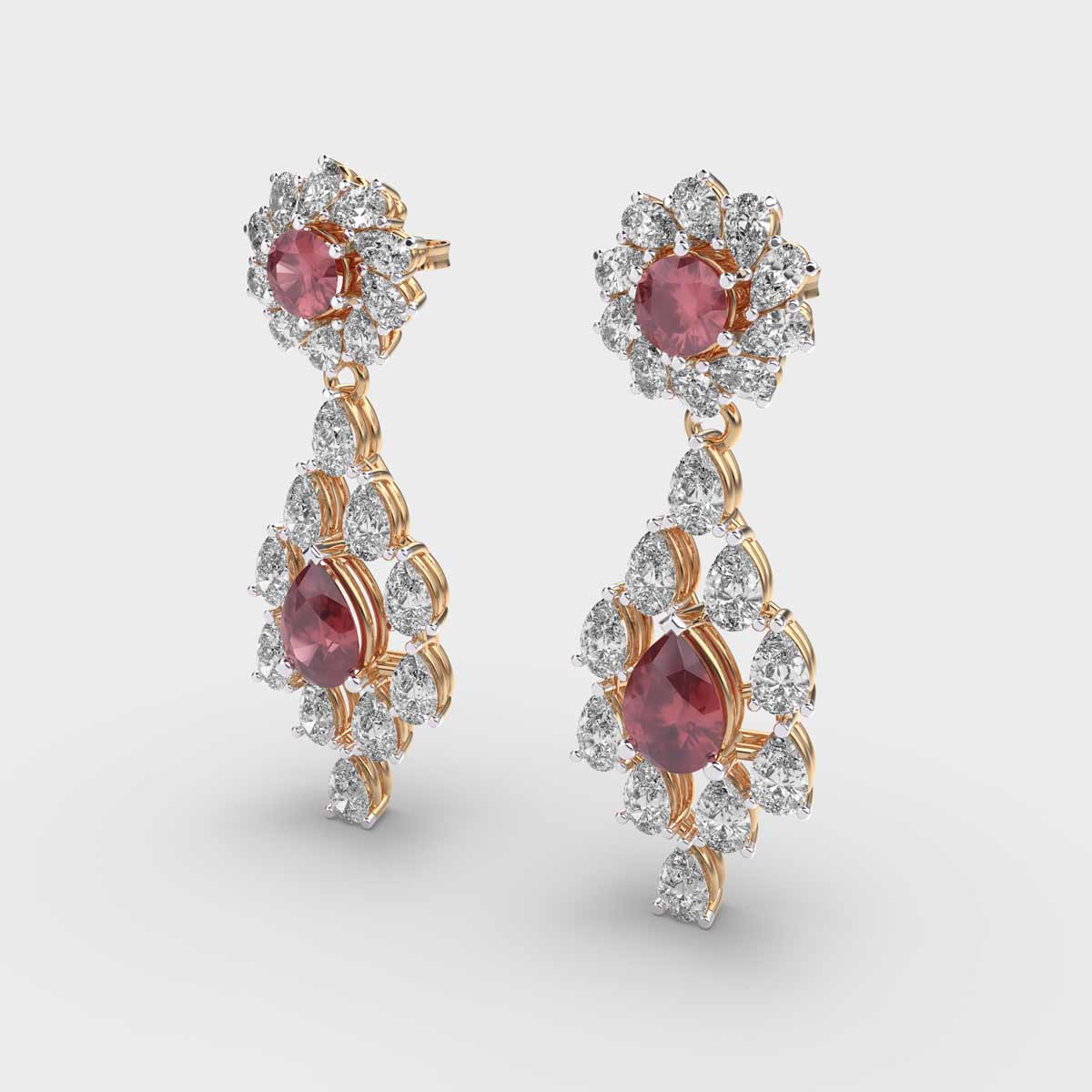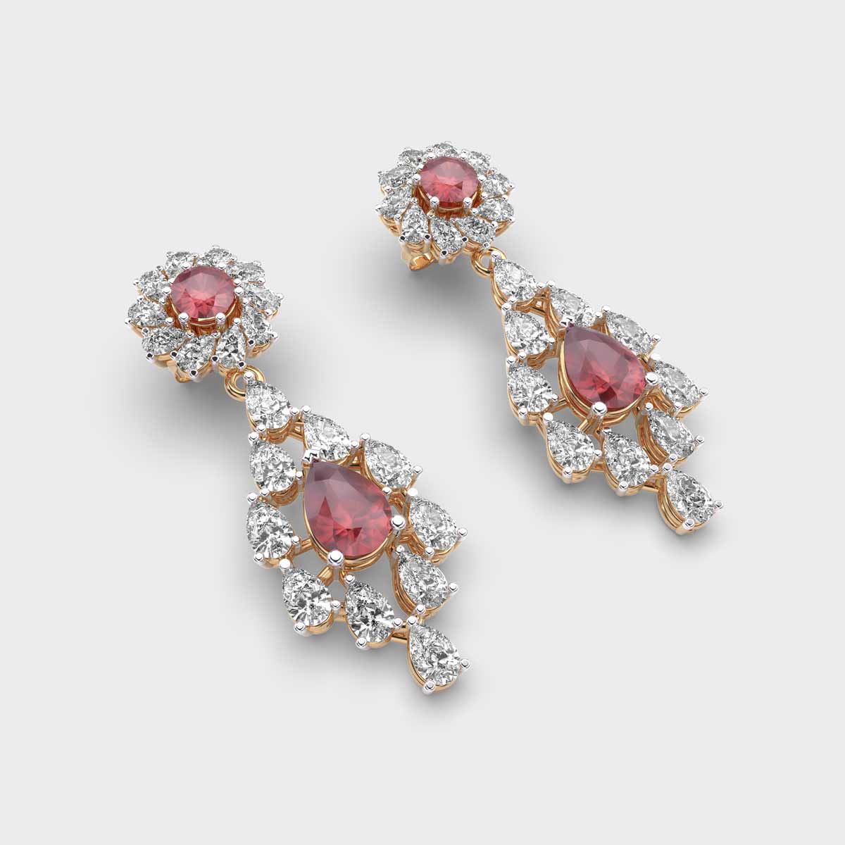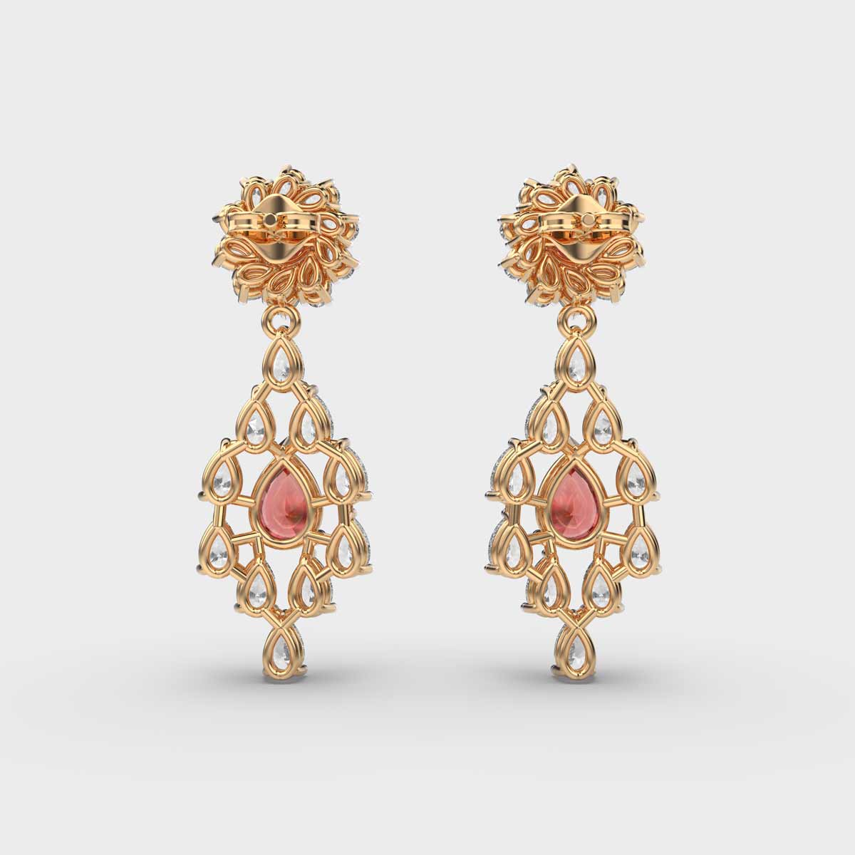 Red Stone Jharokha Diamond Dangler Earrings are the best jewellery essential, designed to add a touch of elegance and sparkle. Their versatile design makes them perfect for everyday wear, office settings, or special occasions, effortlessly complementing any outfit. Crafted to strike a balance between subtlety and brilliance, diamond studs offer a refined yet striking look that suits all styles and personalities. A classic accessory that combines sophistication, versatility, and enduring charm.