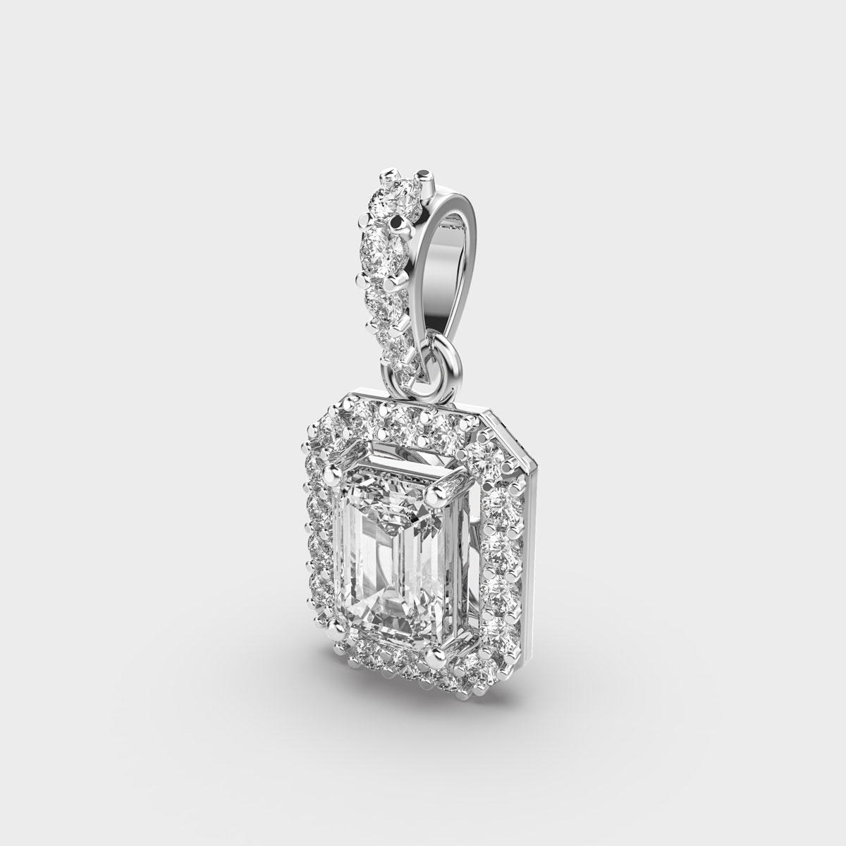 Regal Emerald Cut Halo Diamond Pendant (Without Chain)