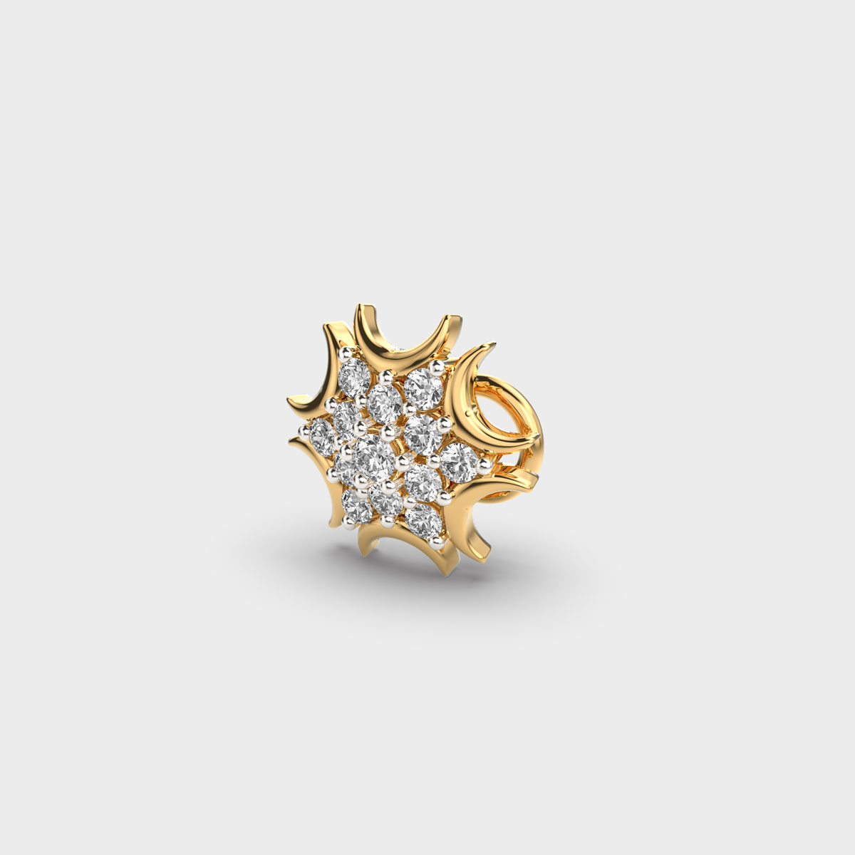 Ripples Of Echo Diamond Nosepin A delicate and elegant accessory that adds subtle sparkle and charm to any look. Crafted with precision, the sparkling diamond enhances its elegant design, making it perfect for both daily wear and special occasions. Lightweight and versatile, a diamond nosepin combines tradition with contemporary style, serving as a timeless piece that reflects personal elegance and refined taste.