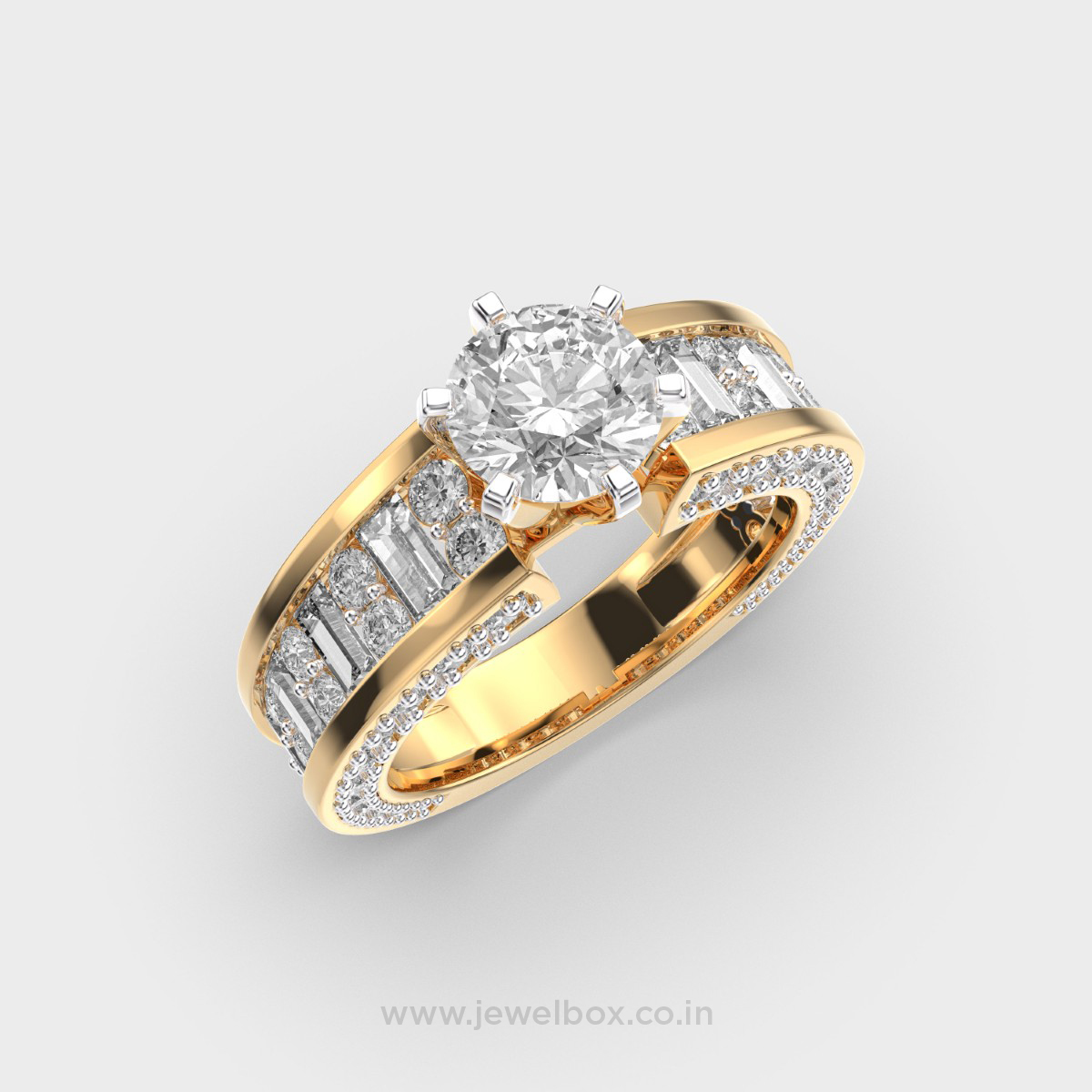 Round and Baguette Diamond Band Ring