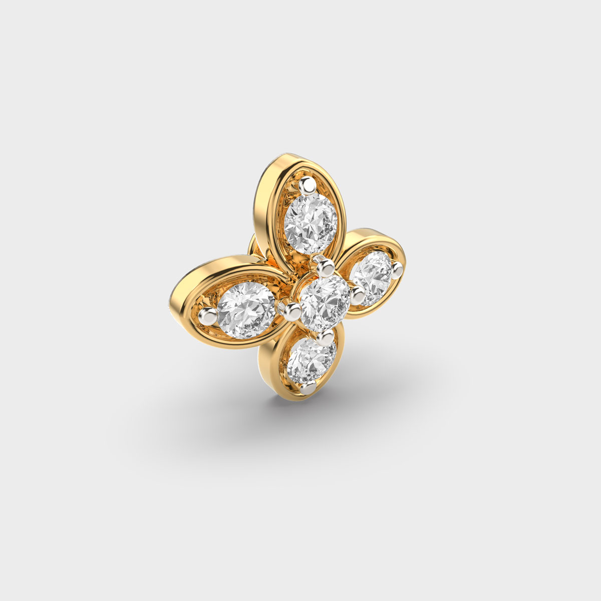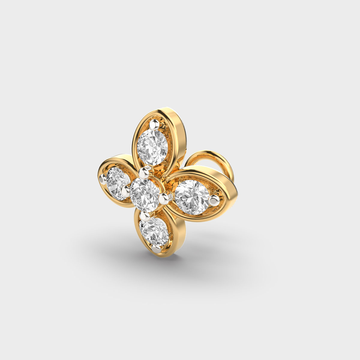 Sacred Blossom Vow Diamond Nosepin is a delicate and elegant accessory that adds subtle sparkle and charm to any look. Crafted with precision, the sparkling diamond enhances its elegant design, making it perfect for both daily wear and special occasions. Lightweight and versatile, a diamond nosepin combines tradition with contemporary style, serving as a timeless piece that reflects personal elegance and refined taste.