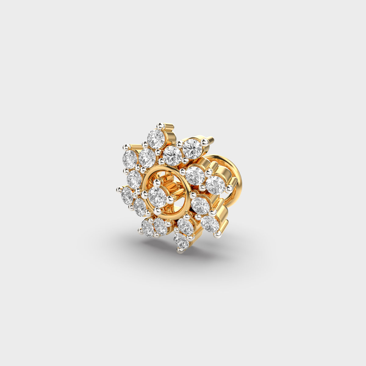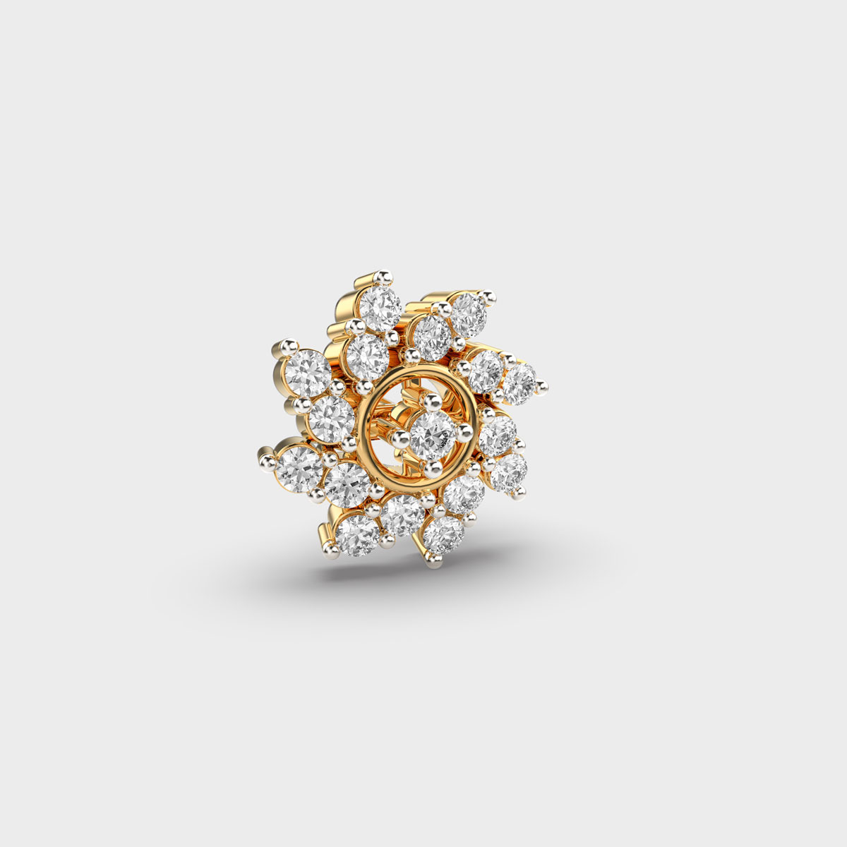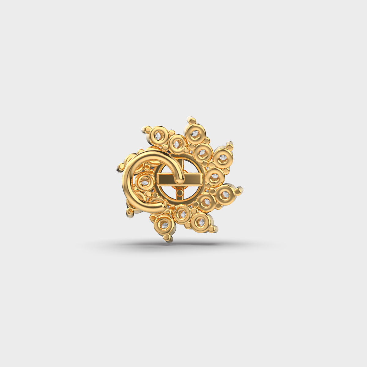 Sacred Ritual Glow Diamond Nosepin A delicate and elegant accessory that adds subtle sparkle and charm to any look. Crafted with precision, the sparkling diamond enhances its elegant design, making it perfect for both daily wear and special occasions. Lightweight and versatile, a diamond nosepin combines tradition with contemporary style, serving as a timeless piece that reflects personal elegance and refined taste.