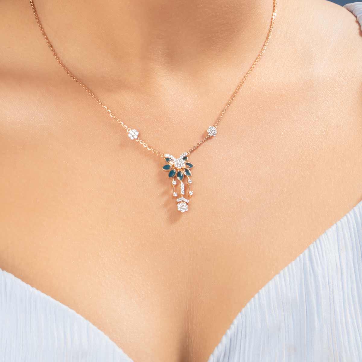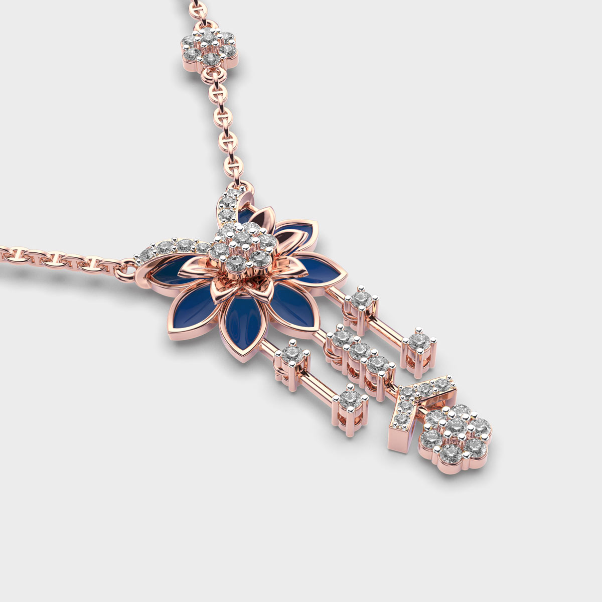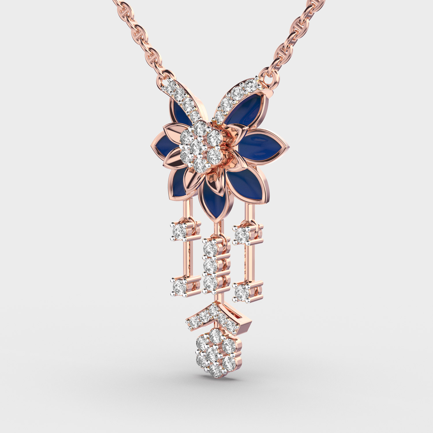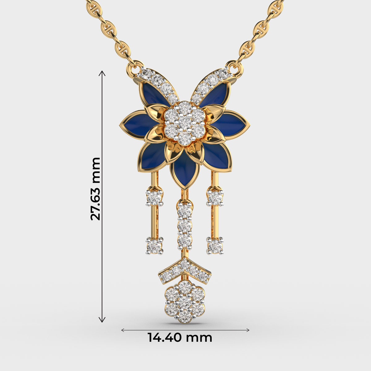 Sapphire Blue Enamel Diamond Pendant with Chain