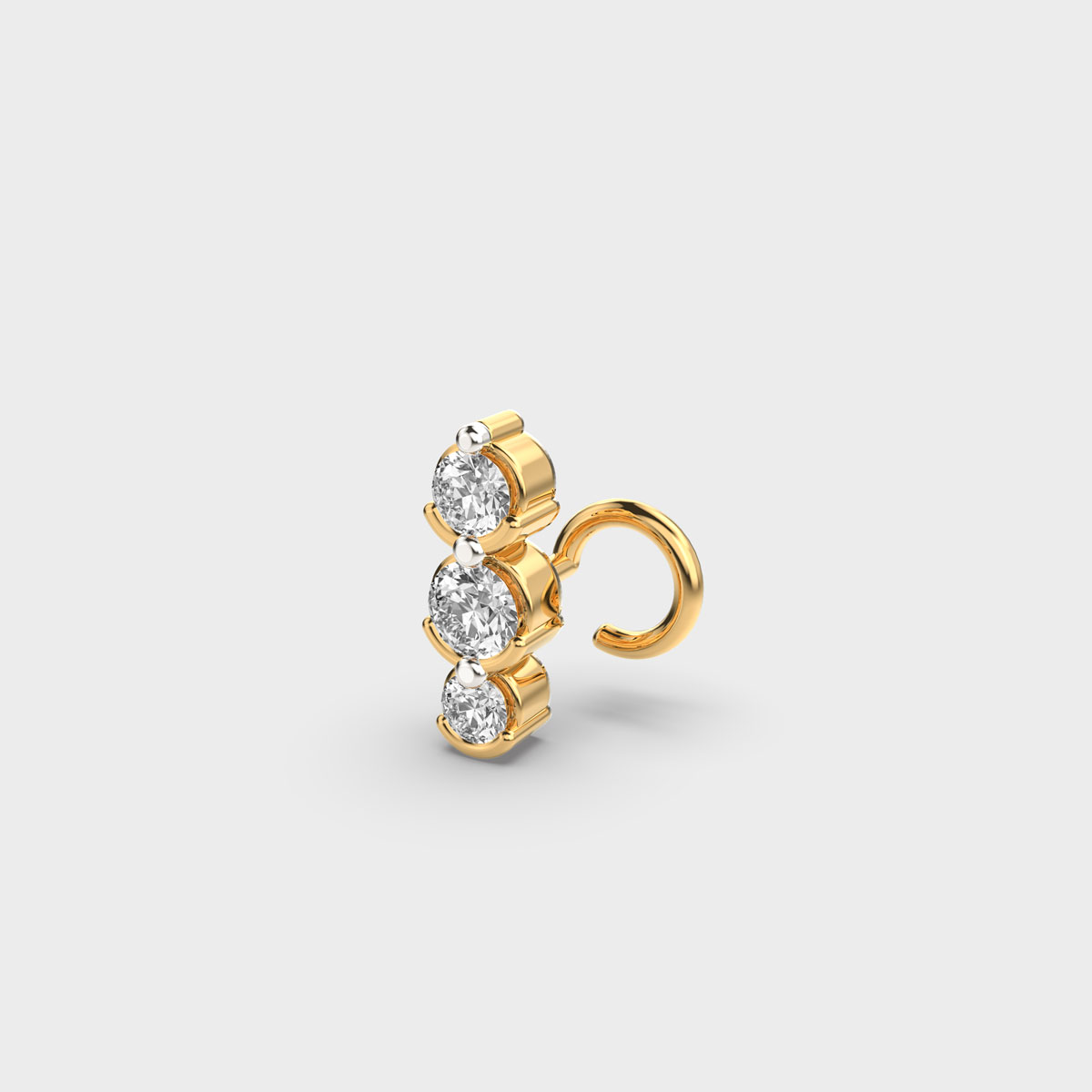 Sassy Troubling Three Diamond Nosepin is a delicate and elegant accessory that adds subtle sparkle and charm to any look. Crafted with precision, the sparkling diamond enhances its elegant design, making it perfect for both daily wear and special occasions. Lightweight and versatile, a diamond nosepin combines tradition with contemporary style, serving as a timeless piece that reflects personal elegance and refined taste.