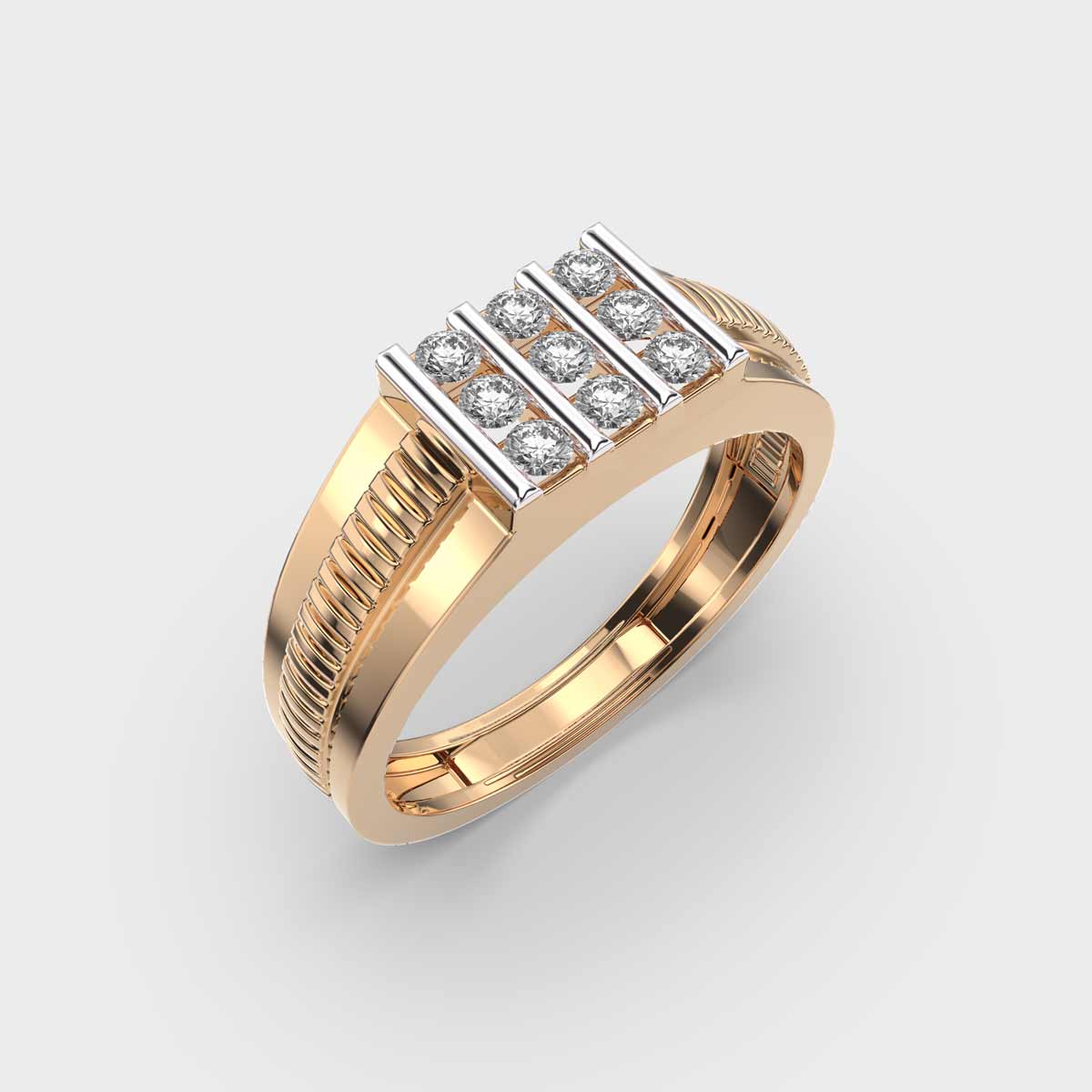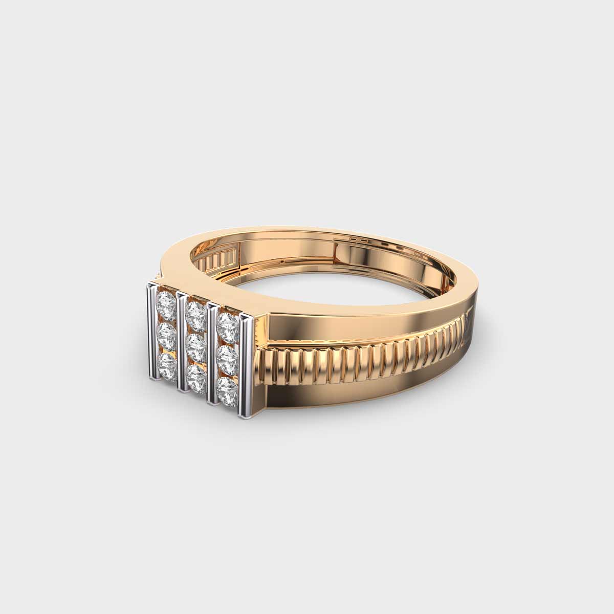 Bold, refined, and powerful. The Saviour Tri Line Men’s Diamond Ring For Men is a statement of strength blended with sophistication. Designed in lustrous gold, the band features a striking rectangular panel encrusted with multiple rows of brilliant lab-grown diamonds, creating an aura of unmatched elegance. The structured design adds a masculine edge, making it a perfect piece for modern men who appreciate both luxury and character.