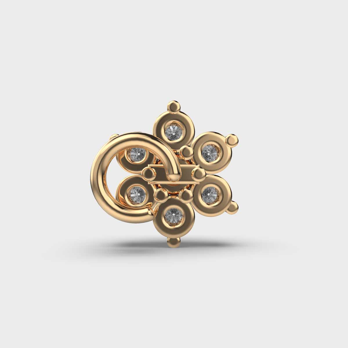 This Scintillating Blossom Diamond Nosepin is a delicate and elegant accessory that adds subtle sparkle and charm to any look. Crafted with precision, the sparkling diamond enhances its elegant design, making it perfect for both daily wear and special occasions. Lightweight and versatile, a diamond nosepin combines tradition with contemporary style, serving as a timeless piece that reflects personal elegance and refined taste.