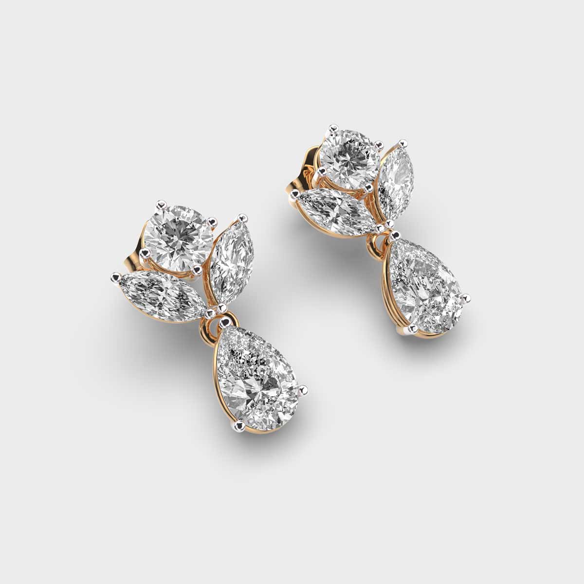 Romantic and radiant, Serene Drop Diamond Earrings showcase a sparkling diamond framed with drop diamonds. The design enhances the brilliance of the central diamond, creating a look that is both charming and timeless. Perfect for expressing love or adding a touch of sparkle to everyday wear, these versatile studs pair beautifully with both traditional and contemporary outfits.